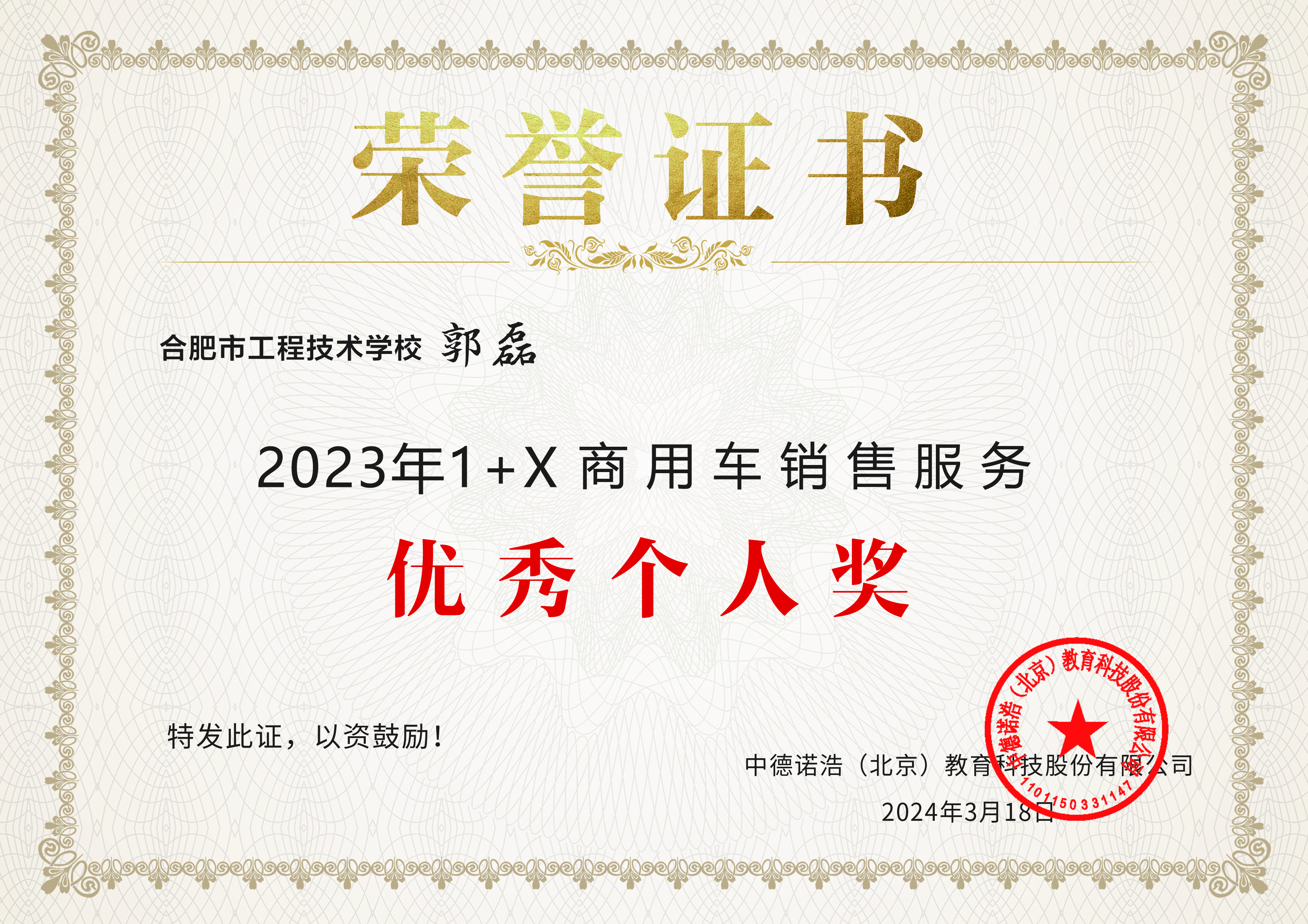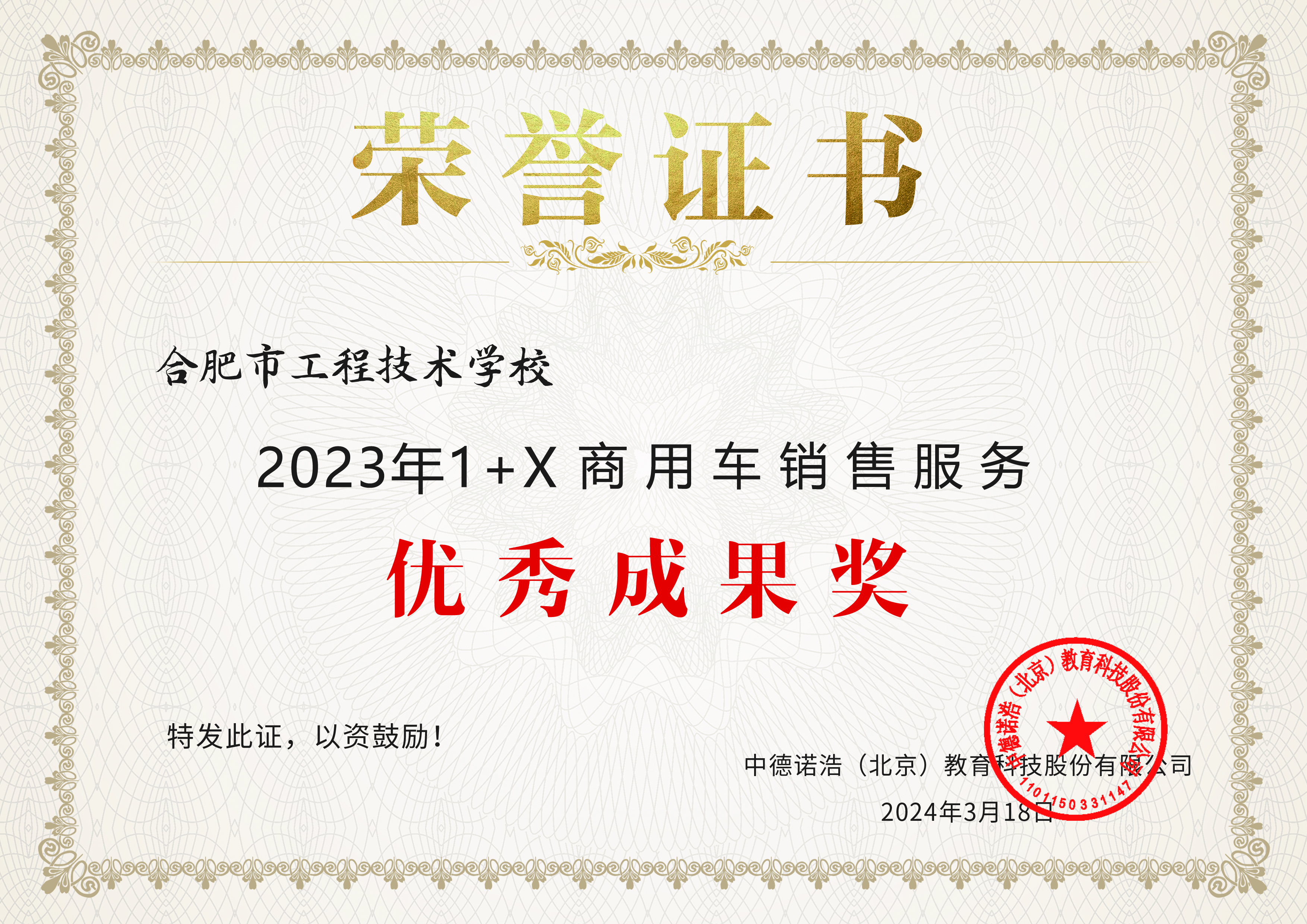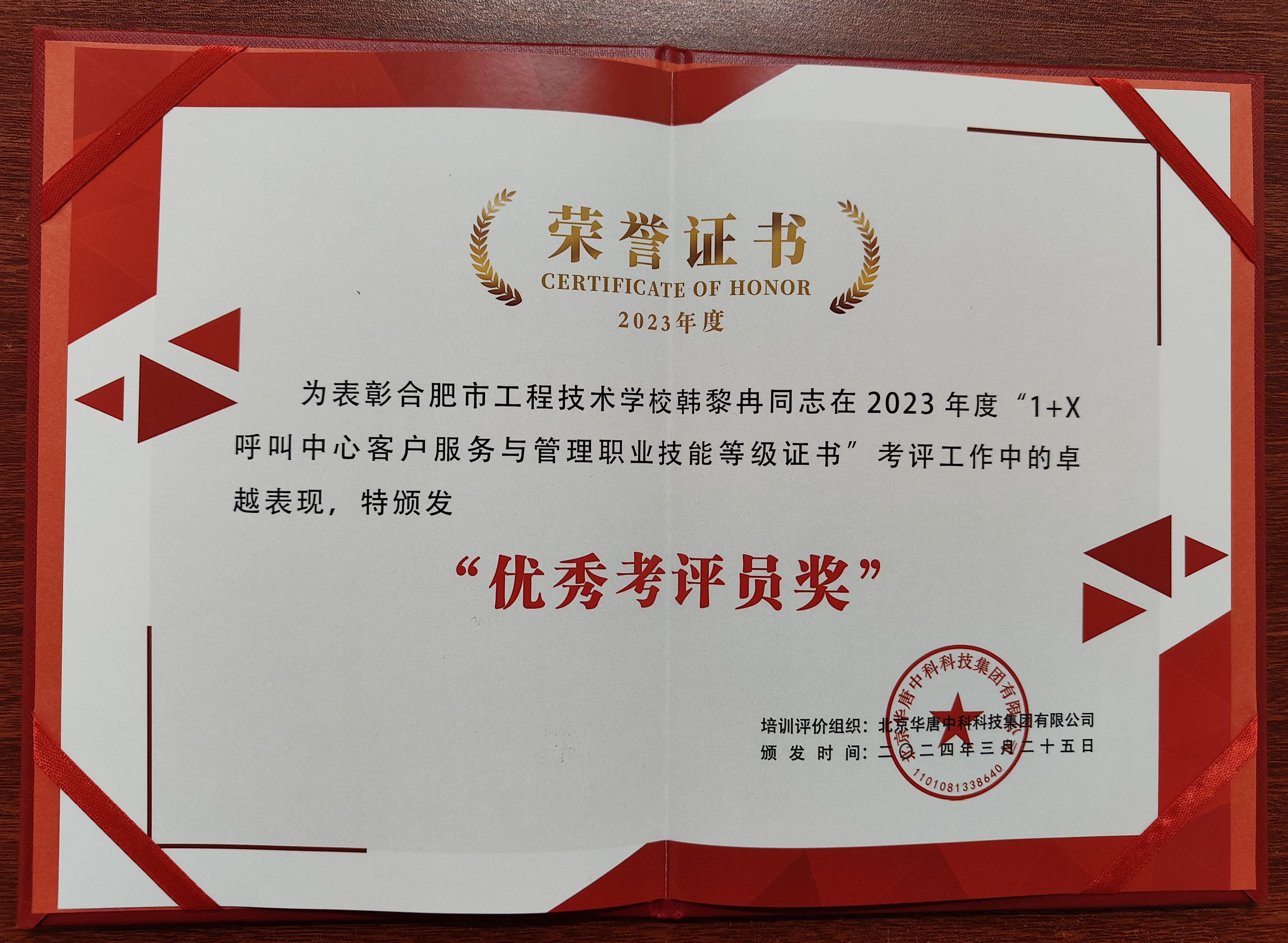 学校被授予“1+X”数字创意建模职业技能等级证书“模范带头院校”,“1+X”呼叫中心客户服务与管理职业技能等级证书“金牌考核站点”,荣获“1+X”商用车销售服务“优秀成果奖”。张华平、韩黎冉、郭磊三位老师分别被授予“优秀指导教师奖”“优秀考评员奖”和“优秀个人奖”。