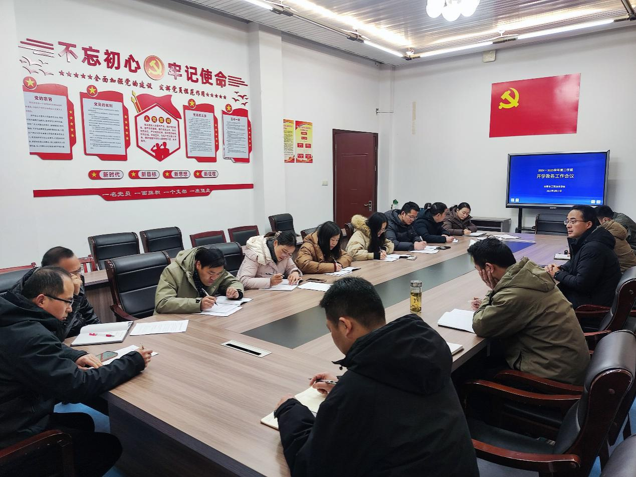 为全面总结上学期教学工作整体情况,查摆问题、找出亮点,部署新学期各项教学工作,持续推动学校教学工作高质量发展,2月11日下午,MG冰球突破官网召开2024-2025学年度第二学期开学教学工作会议。教务处主任王雪峰、教科室主任马丽、教务处工作人员蒋辉及全体教研室主任参加会议。会议由王雪峰主持。