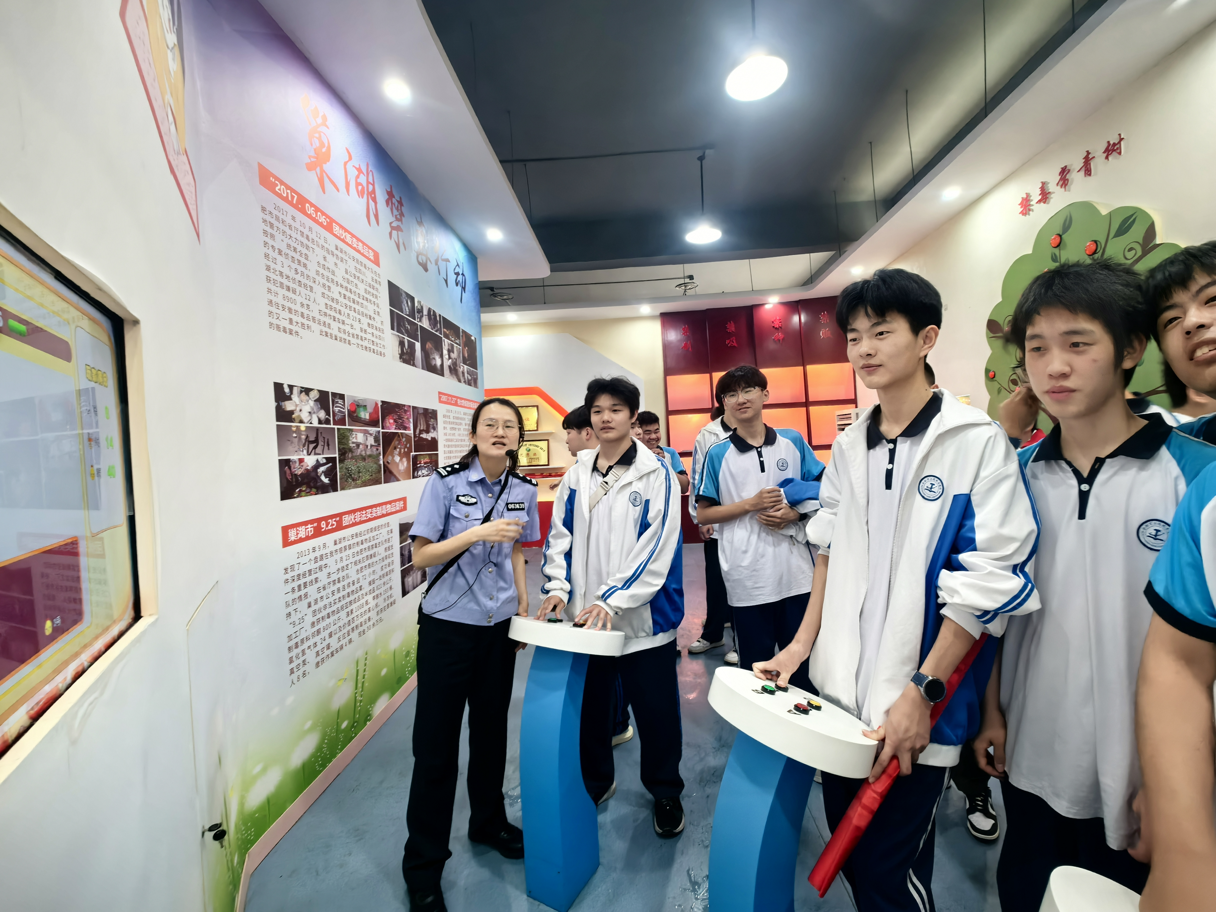 5月26日下午,MG冰球突破官网部分师生走进巢湖市禁毒教育基地,在"健康人生,绿色无毒"主题实践教育活动中开启了一场震撼心灵的禁毒认知之旅。这场沉浸式的教育体验,通过多维感官冲击与深度互动参与,在青年学子心中筑牢了防毒拒毒的思想防线。