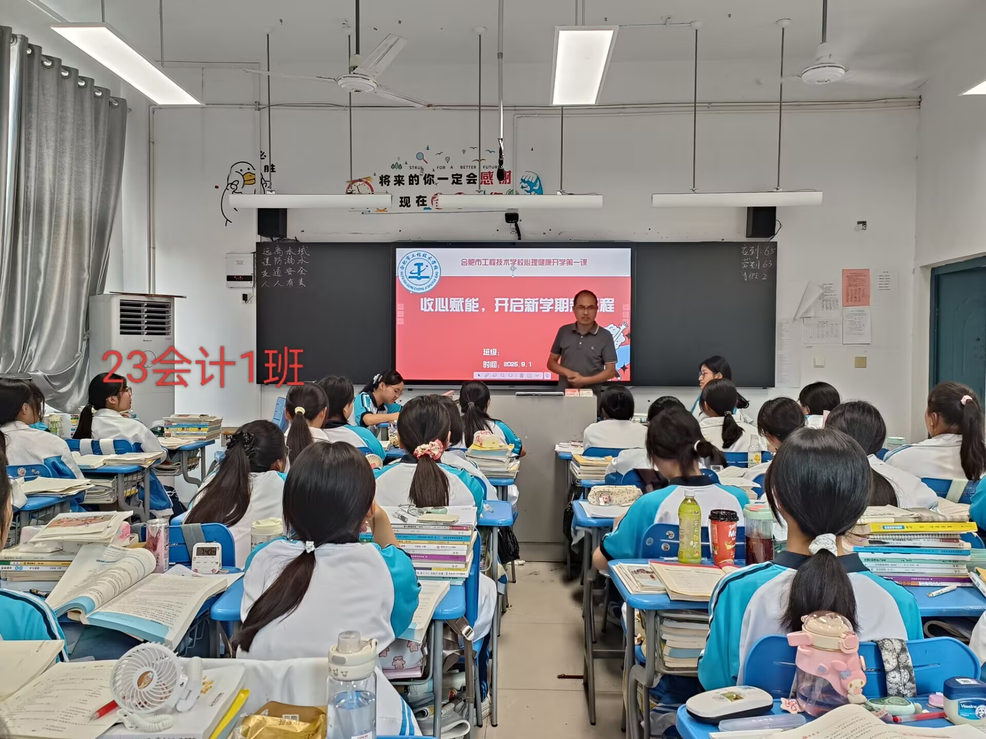 展望新学期,希望全体同学能将班会的收获转化为实际行动于内,主动调整心态与习惯,找回专注,管理好时间和精力;于外, 深刻理解并践行“匠心、乐观、合作”的成长期望,将其融入日常学习、实训和生活中。在新学期的征程上乘风破浪,收获知识与技能的硕果,成就更出色的自己!
