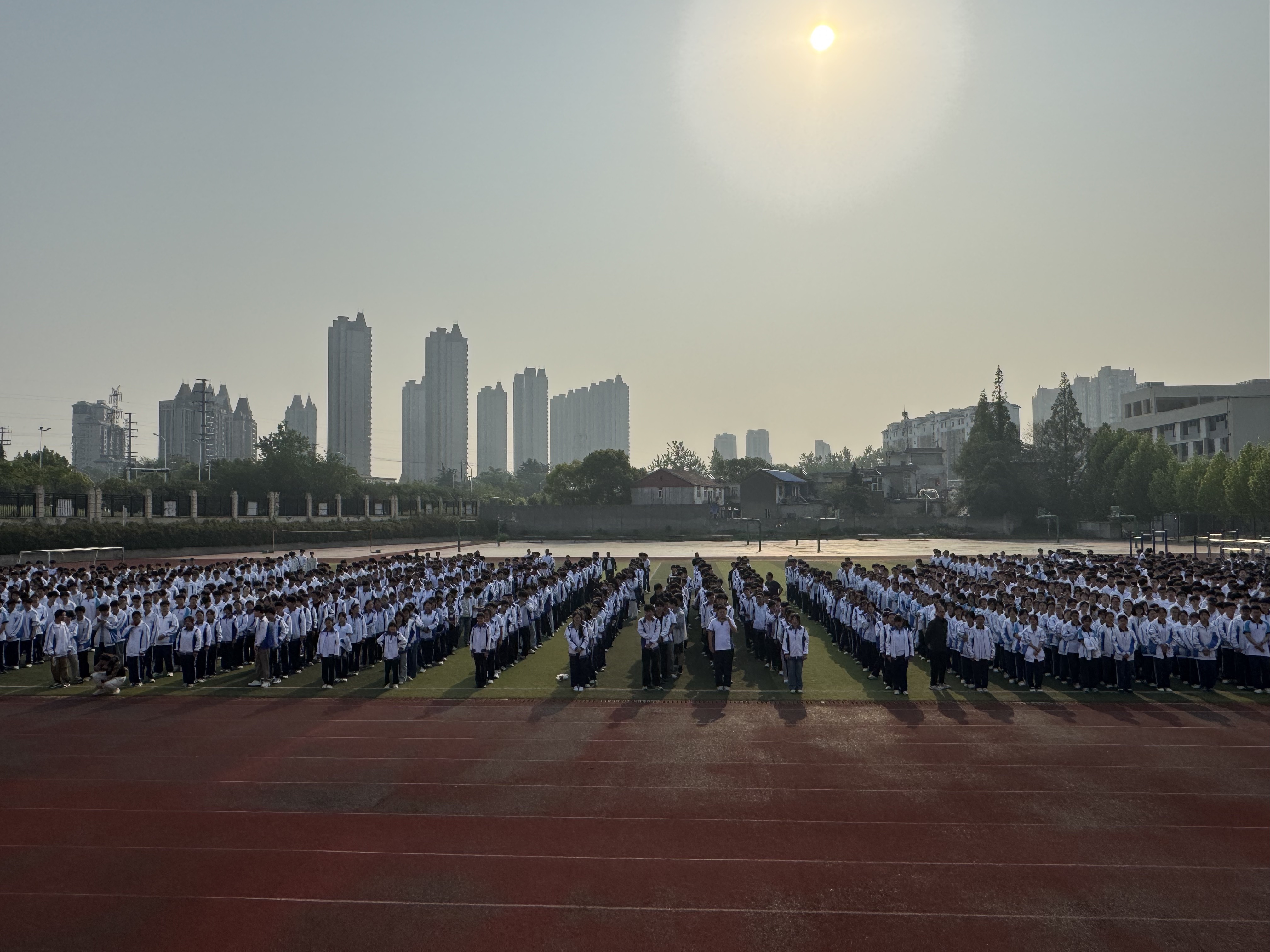 随着激昂的《义勇军进行曲》奏响,鲜艳的五星红旗冉冉升起,全体师生行注目礼,奏唱国歌。