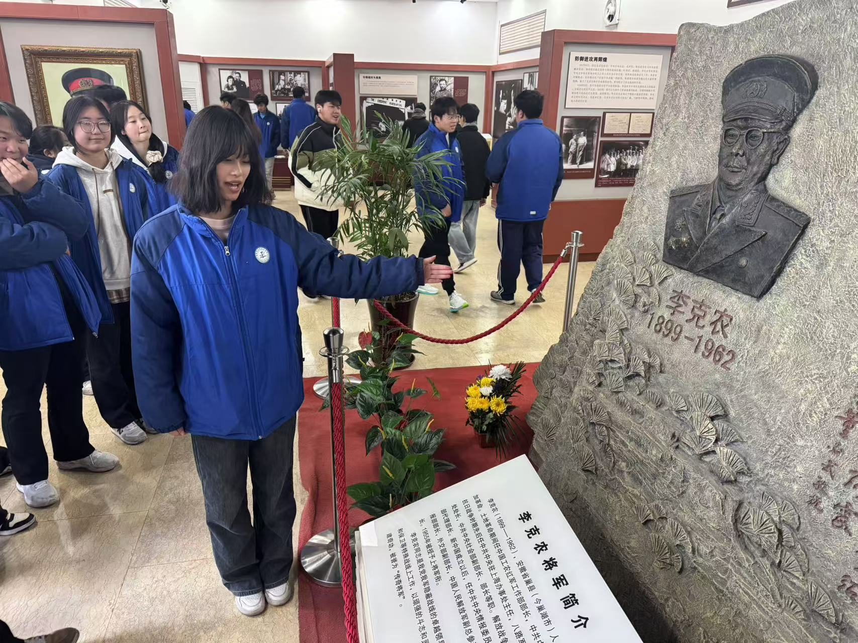 随后师生前往烔炀镇李克农故居和生平事迹展览馆,深切缅怀李克农将军的革命事迹。李克农将军是久经考验的无产阶级革命家、杰出的社会活动家、外交家,我党我军隐蔽战线的卓越领导者和组织者。在展览馆内,冰球突破正规网站旅游专业学生代表苏静怡、韩丽彤两位同学发挥专业优势,利用旅游专业课程所学习的技能为大家讲解李克农将军的生平事迹。同学们认真聆听了她们的生动讲解,对李克农将军的克己奉公、廉洁自律、生活简朴的革命精神和一生为共产主义信仰奋斗的传奇事迹表达了崇高的敬意。