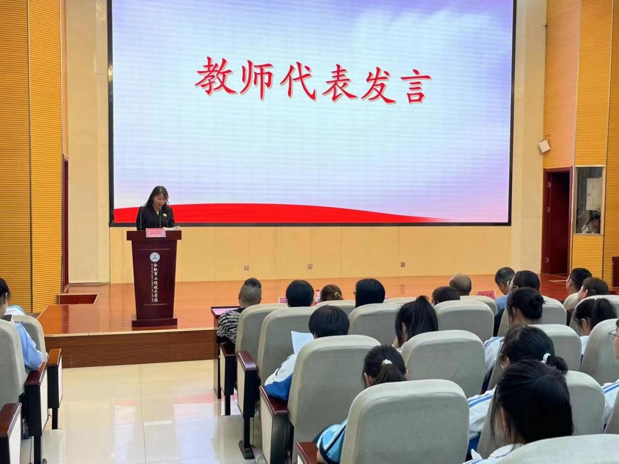 接着教师代表张霞老师发言,她在发言中勉励同学们,十八岁意味着责任,意味着担当,意味着世界将在同学们面前呈现出更广阔的模样,也意味着同学们将迎接更多的挑战。希望同学们展开十八岁的胸怀,迈开十八岁的步伐,心怀感恩,铭记责任,以奋斗的姿态开始十八岁后的人生旅程!