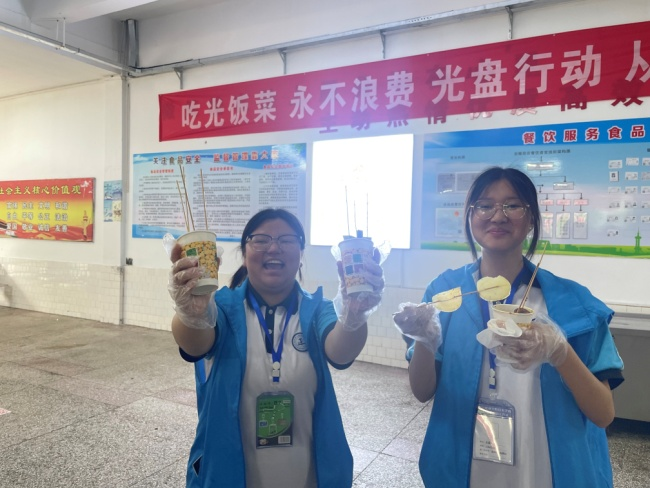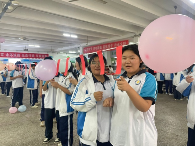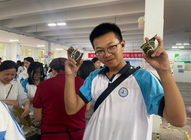 除了粽子等美食制作外,现场还举行了猜字谜和吹气球比赛。整个活动现场,学生与老师们一起切磋技艺、相互交流,一起品尝劳动成果,现场欢声笑语不断、洋溢着浓厚的活动育人氛围。