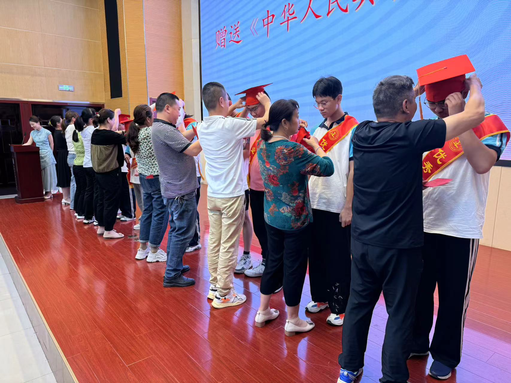 五、佩戴成人帽、赠送《宪法》、行拥抱礼