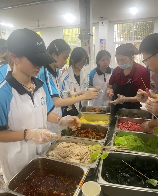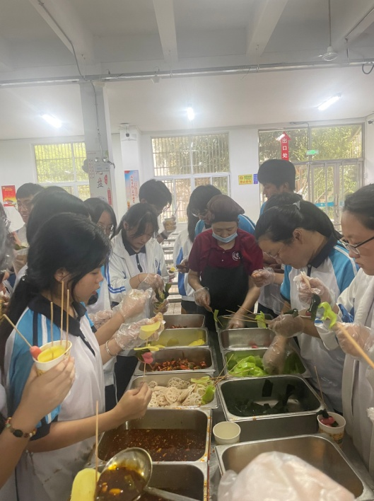 自制钵钵鸡:“钵钵鸡,一元一串的钵钵鸡”。这是线下一种很火的网红小吃,通过这次活动,让孩子们也来制作一把潮流小吃“钵钵鸡”。