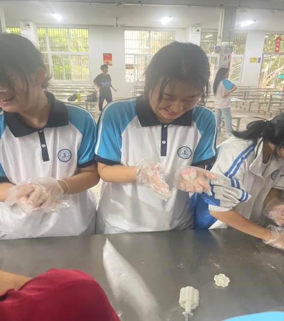 月饼制作:面点师示范做月饼的步骤,同学们通过亲手制作月饼,不仅体会了制作美食的乐趣,还能向他们传达了“月饼”所蕴藏的历史记忆和文化情感。