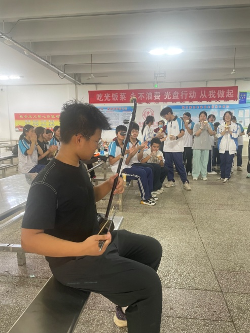 文艺表演:活动中学生们一首饱含深情的诗歌朗诵送给食堂员工,感谢他们默默奉献和辛勤的付出。随后,悠扬的二胡声响起,学生带来了中国传统民乐经典《赛马》,将现场的气氛推向高潮。