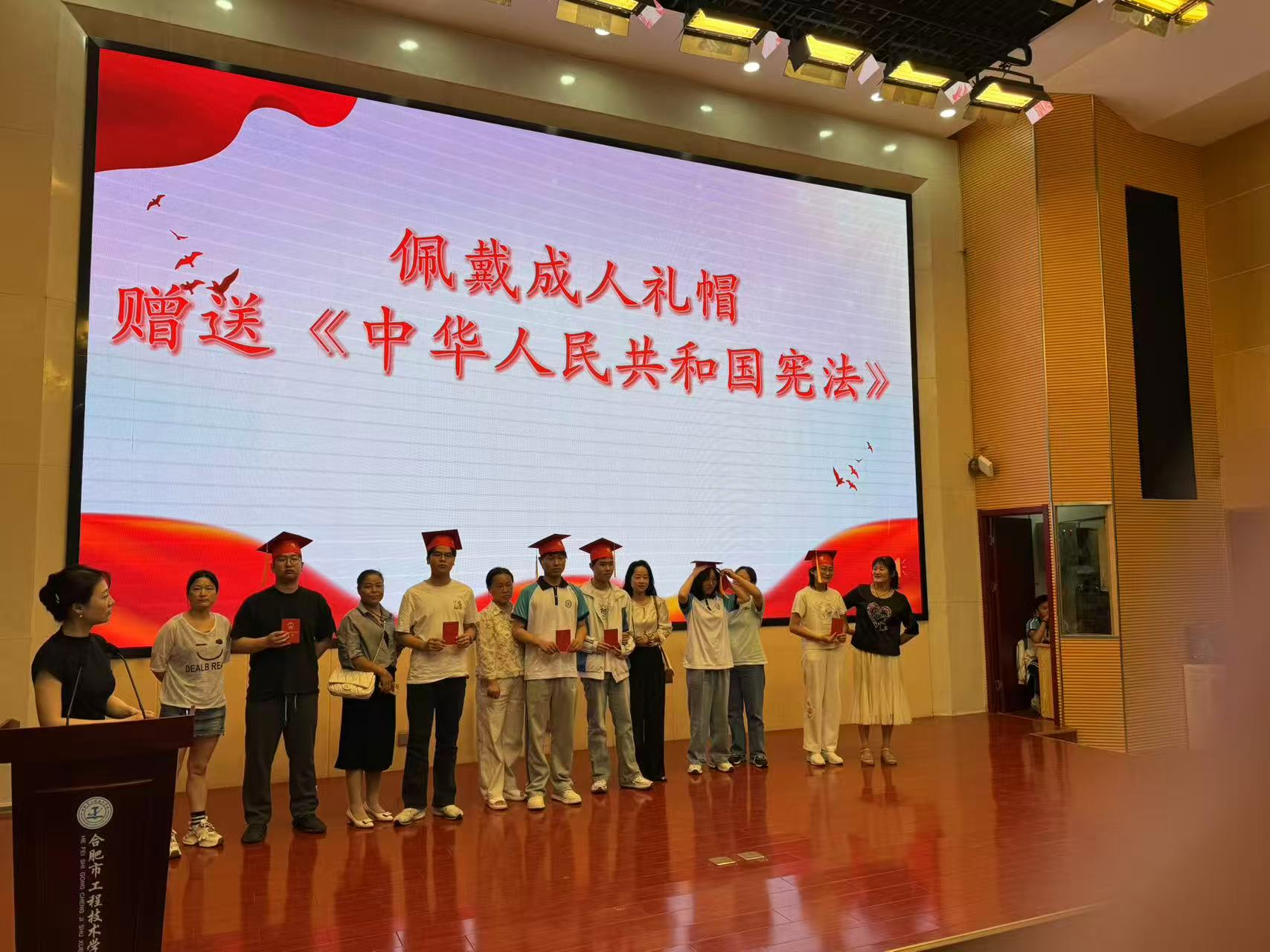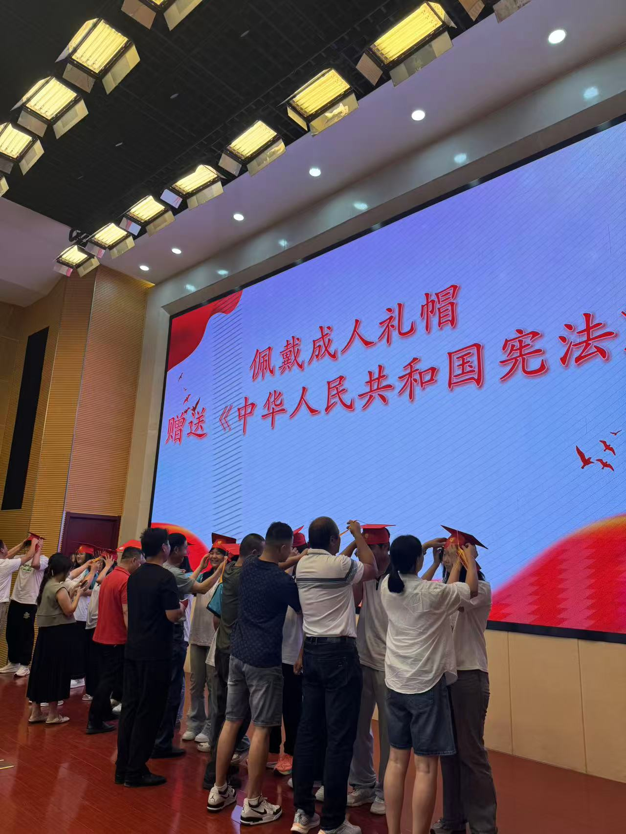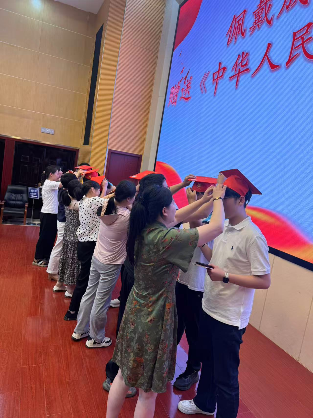冠礼是中华民族传承千年的成人仪典,这一承载文明基因的礼仪规制,不仅是个人成长的重要里程碑,更意味着社会责任的郑重担承。在全场师生的共同见证下,仪式迎来最庄严的时刻——家长们亲手为孩子佩戴象征成年的礼帽,并郑重颁赠《中华人民共和国宪法》,寓意以宪法精神护航成年之路,在法治信仰的引领下开启责任与担当的人生新篇。