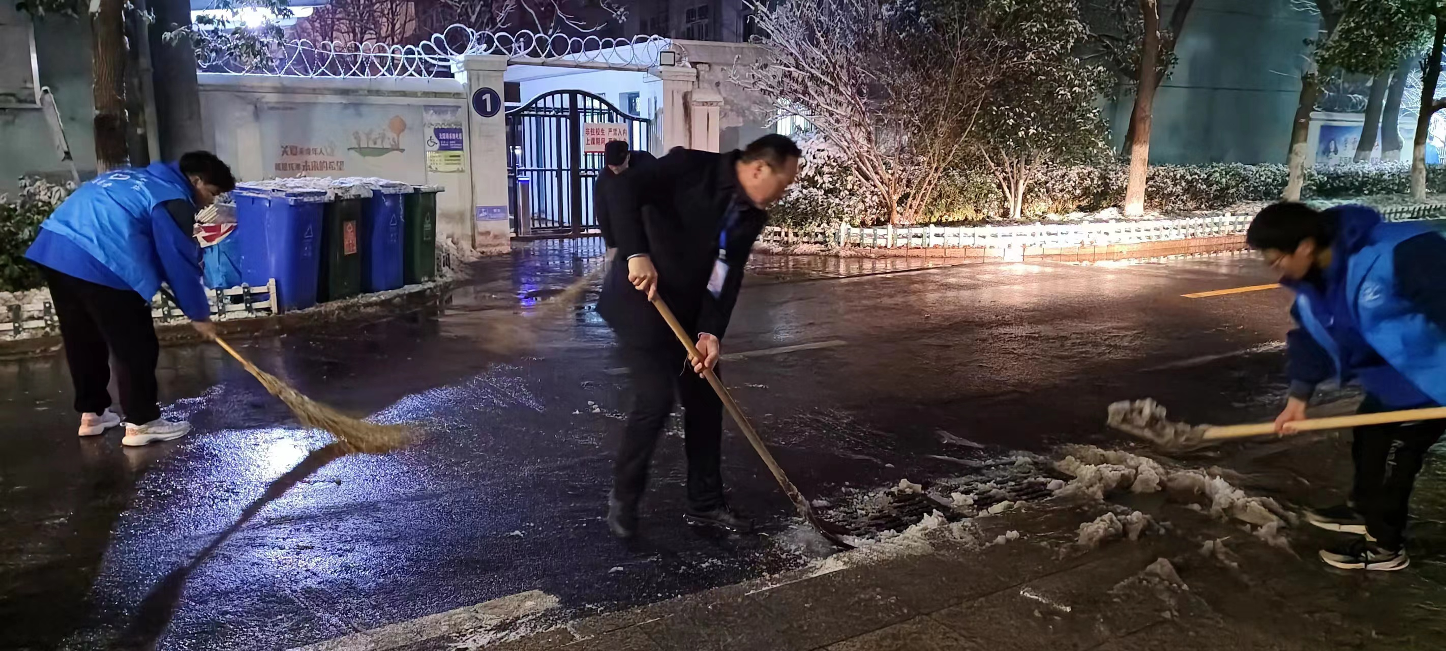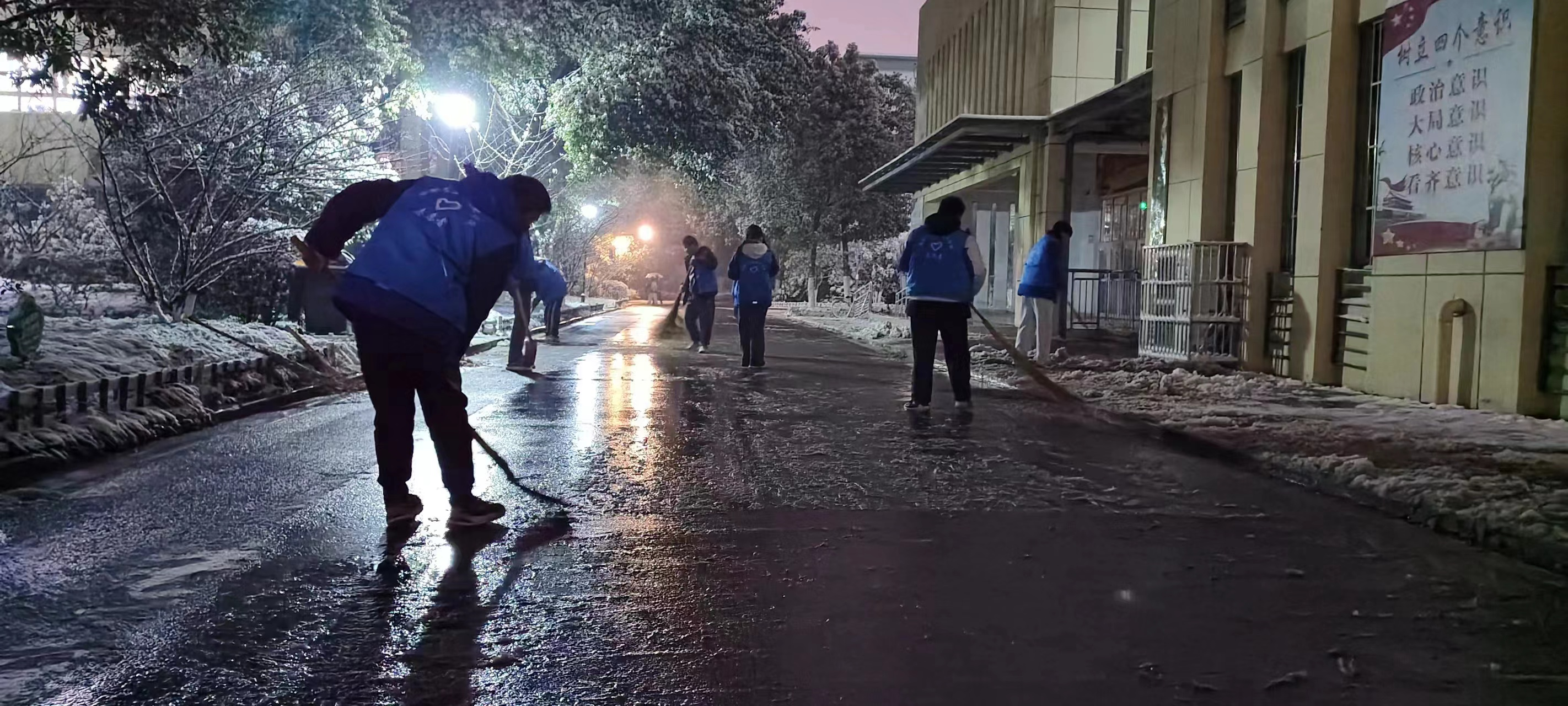 在王成满的组织下,师生们积极投身到这场除雪铲冰护学行动中。夜晚天气虽冷,但大家热情高涨。活动中,大家团结协作,全身心投入,扫的扫、铲的铲,相互配合默契。学校大门口、教学楼前后、图书馆、宿舍、食堂、实训工厂门前……处处留下了大家劳动的身影,为这个冬日增添了一道靓丽的风景线。