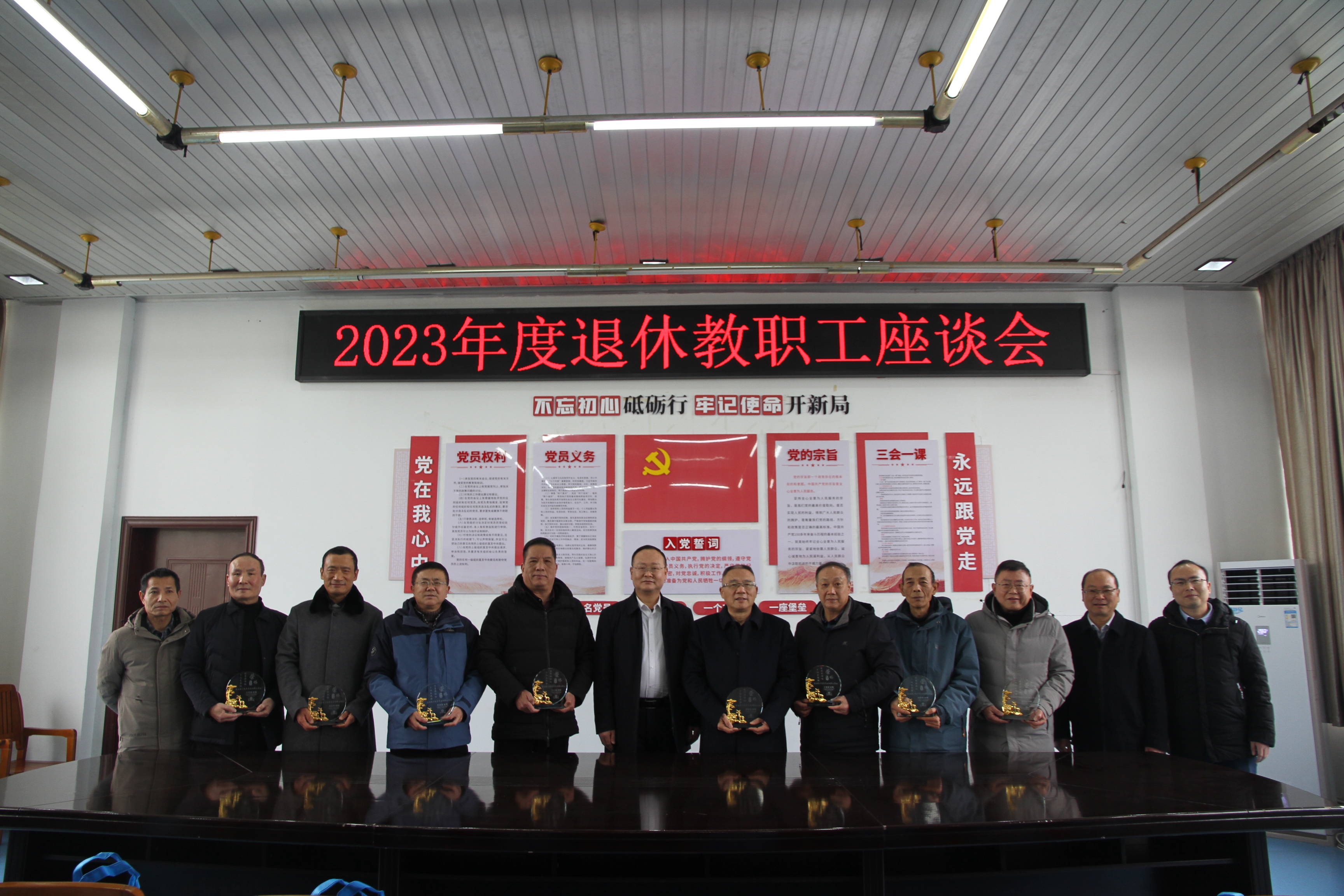 王成满代表学校向退休教职工送上了热烈祝贺和美好祝福,充分肯定了退休教职工们在学校工作中的贡献,感谢他们多年来兢兢业业、无私奉献的工作。同时,也希望他们“退而不休”,一如既往地支持学校的教育教学工作,积极为学校的发展出谋划策,奉献余热;更希望他们“老有所乐”,拥有健康快乐、充实幸福的退休生活。最后为退休教职工送上纪念牌和纪念品,并与他们集体合影留念。