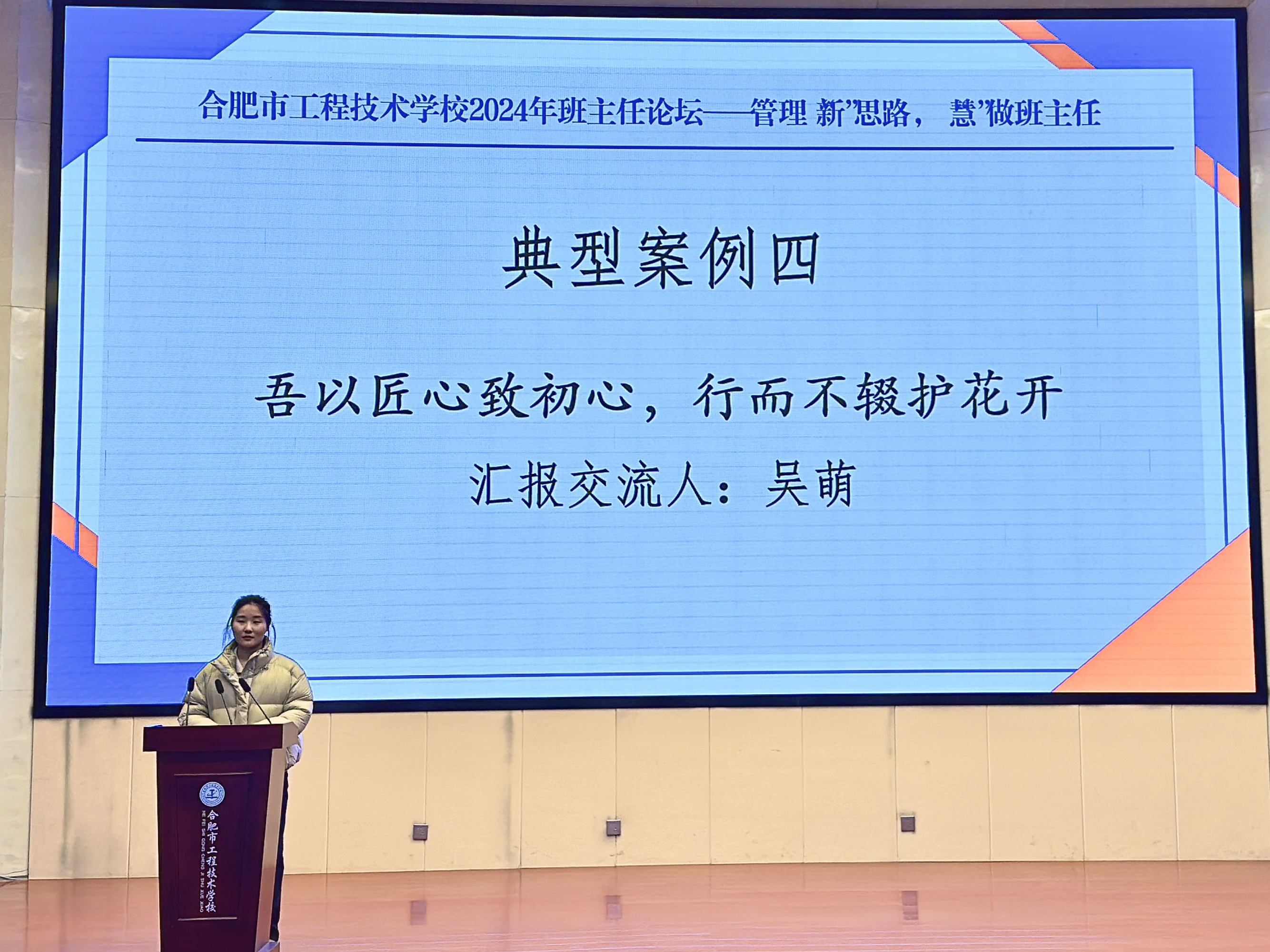 随后,七名班主任依次进行了典型案例的现场发言交流。分别是肖磊老师的《从顽石到璞玉:以三心践行教育蜕变之路》,韩黎冉老师的《齐心协力,拯救花季生命》,吴萌老师的《吾以匠心致初心,行而不辍护花开》,杜皓老师的《学生语言不文明,怎么办?》吴志广老师的《学习习惯不好,怎么办?》江夏灿老师的《修剪枝丫,静待花开》,韩玉婷老师的《等一朵花开,等一阵风来》。同时,三名班主任的教育叙事进行了书面交流。分别是周智源老师的《助“迷失心”归航》,王志杰老师的《用爱浇灌成长,用耐心等一树花开》,方静老师的《有人在说我坏话》。七篇典型案例和三篇教育叙事从班级常规管理、班级活动创新、心理健康、学生文明言行、手机管理、学困生转化等方面交流了班级管理工作中的具体工作方法、经验与思考,为解决班主任在工作中的难题和困惑提供了参考,让参加活动的班主任受益匪浅。