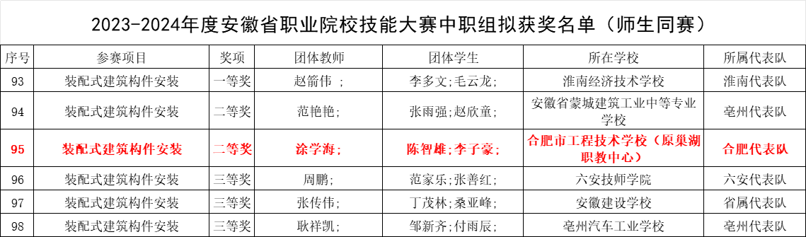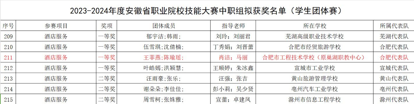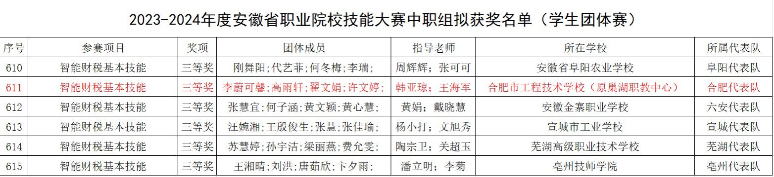 近日,安徽省教育厅、安徽省经济和信息化厅、安徽省人力资源和社会保障厅联合主办的2023-2024年度“中银杯”安徽省职业院校技能大赛中职组成绩揭晓,冰球突破正规网站师生荣获学生团体赛一等奖1项、三等奖1项,师生同赛二等奖1项,实现了冰球突破正规网站在全省职业院校技能大赛中的历史性突破。