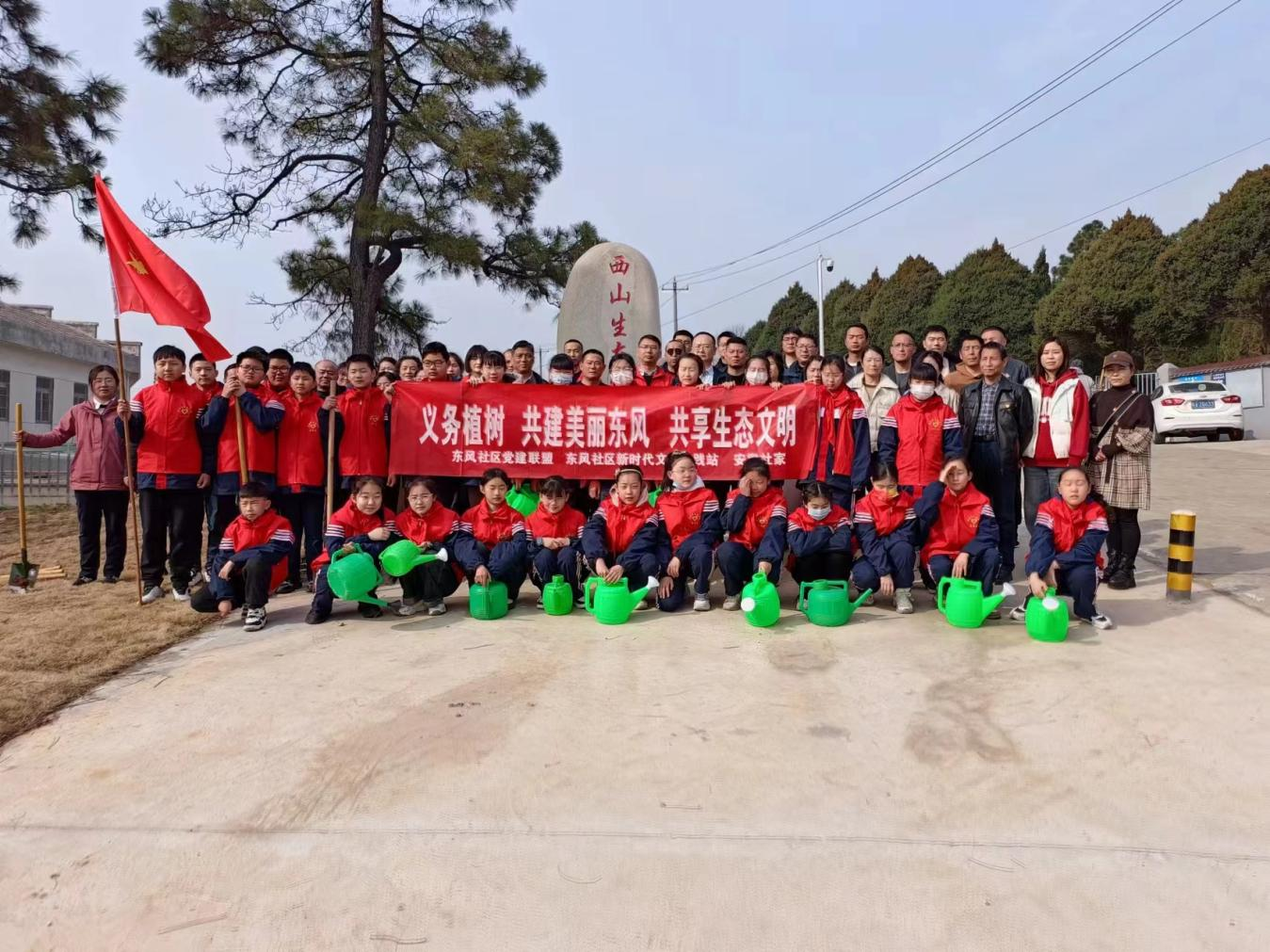 春之伊始,万木生发。在全国第46个植树节到来的前夕,为贯彻落实绿色发展理念,增强党员的环保意识,3月11日,在校党委书记王成满的带领下,我校二十余名党员志愿者迎着春日的暖阳,踏着温柔的春风,来到党建联盟共建单位——东风社区,参加义务植树活动。在社区干部的带领下,志愿者们来到巢湖市西山生态陵园植树基地开展义务植树志愿服务活动,以实际行动为建设美丽巢湖贡献力量。