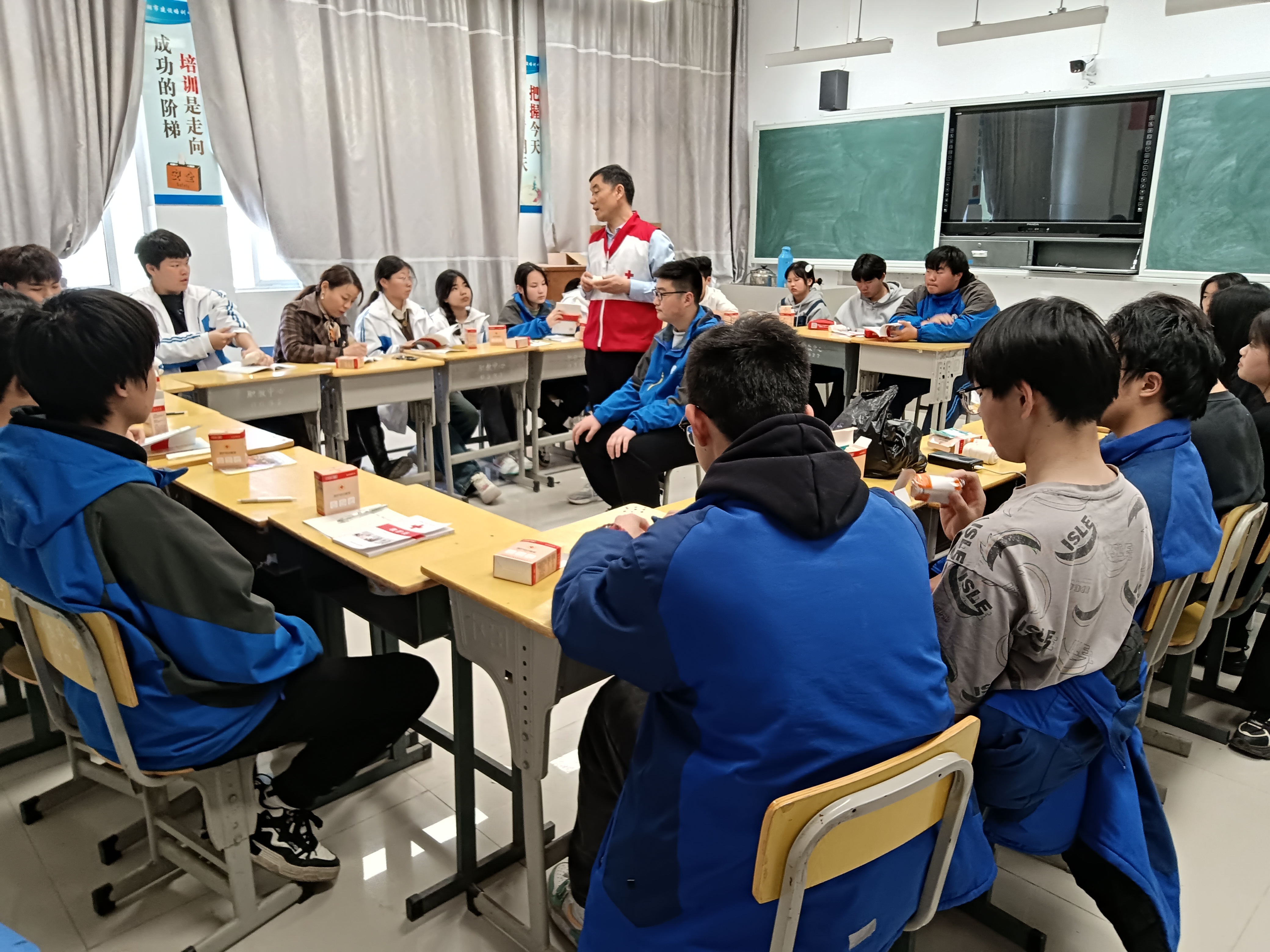 为进一步加强学生的生命安全教育,提高应急救护技能,助力平安校园建设。3月29日,冰球突破正规网站邀请巢湖市红十字会培训教师来校为近60名班级安全联络员开展“红十字救护员证”实操培训与现场考核。