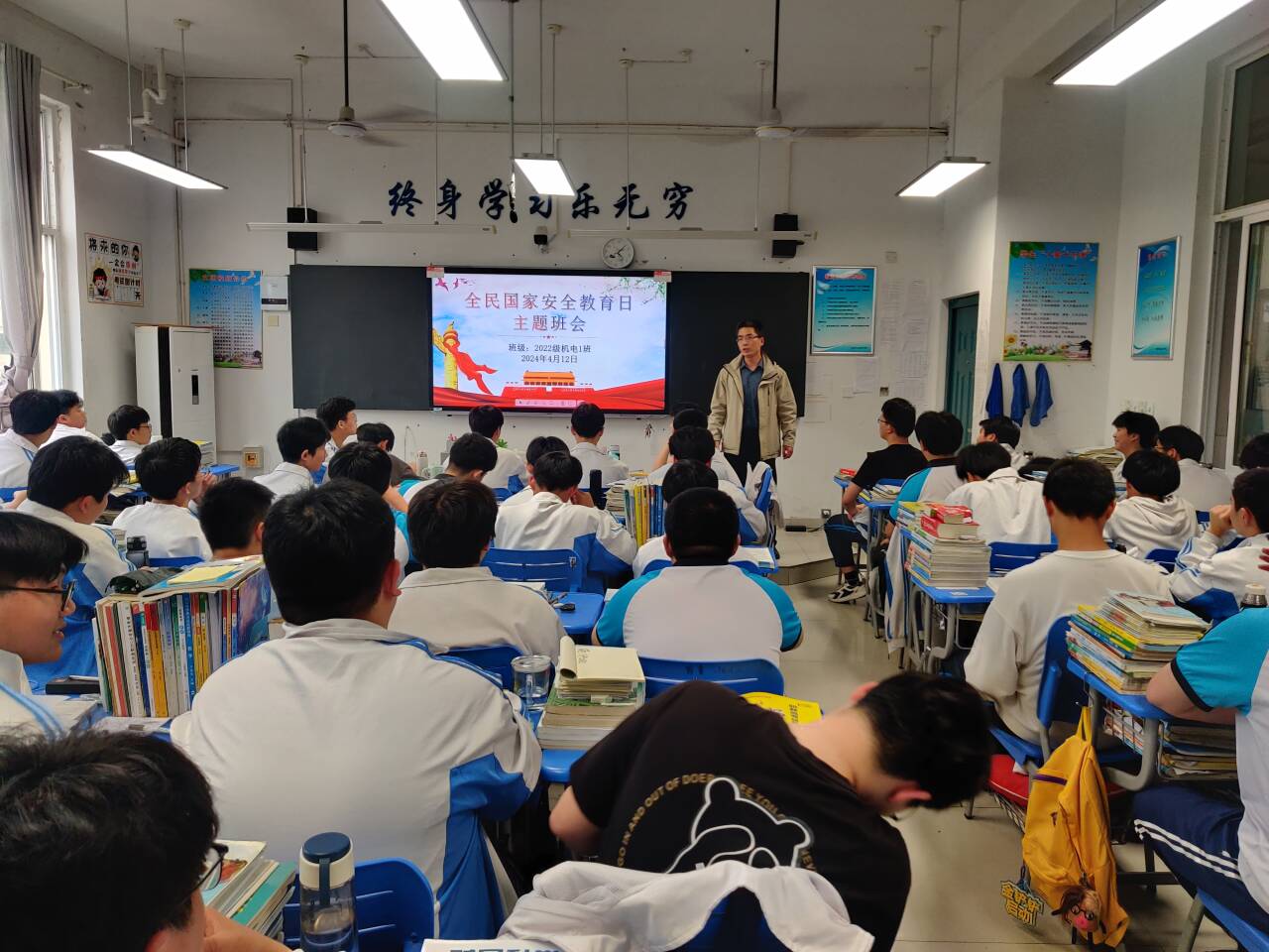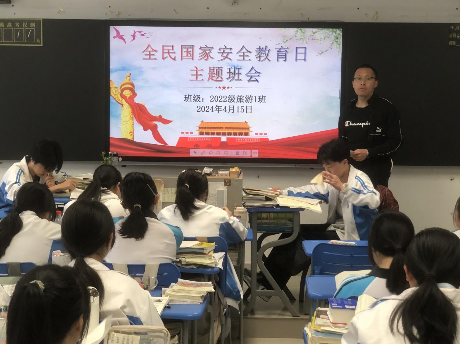 各班主题班会上,班主任通过宣传《国家安全法》、《反恐怖主义法》、《反间谍法》等法律法规,详细讲解案例警示、安全防范等相关安全知识,深入浅出地向学生讲解了国家安全的重要性,让每个学生都认识到个人行为与国家安全之间的重要关系。