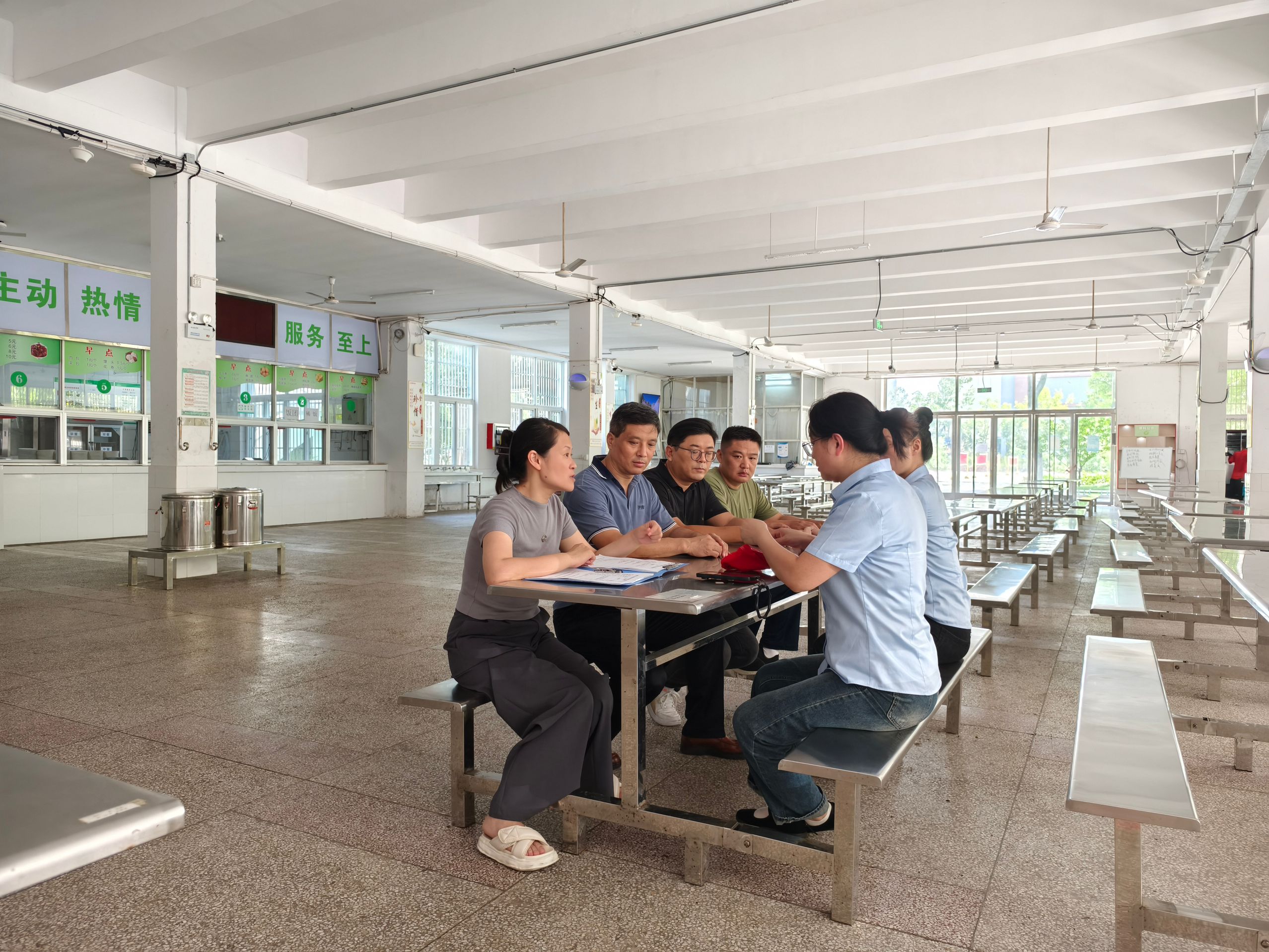 为认真贯彻落实《关于做好2024年秋季学期学校食品安全工作的通知》文件精神要求,进一步加强学校食堂食品安全工作质量,不断提高食堂管理和从业人员的食品安全意识,抓好食品安全管理,杜绝食品安全事故发生,确保师生能够吃上安全、可口、营养餐食。9月9日上午,MG冰球突破官网组织开展新学期校长食堂现场办公会。校长潘明、总务处主任颜萍、副主任靳安翔、食堂管理员张峰及食堂经营负责人参会,会议由潘明主持。会议分为实地查看和座谈交流两个阶段。