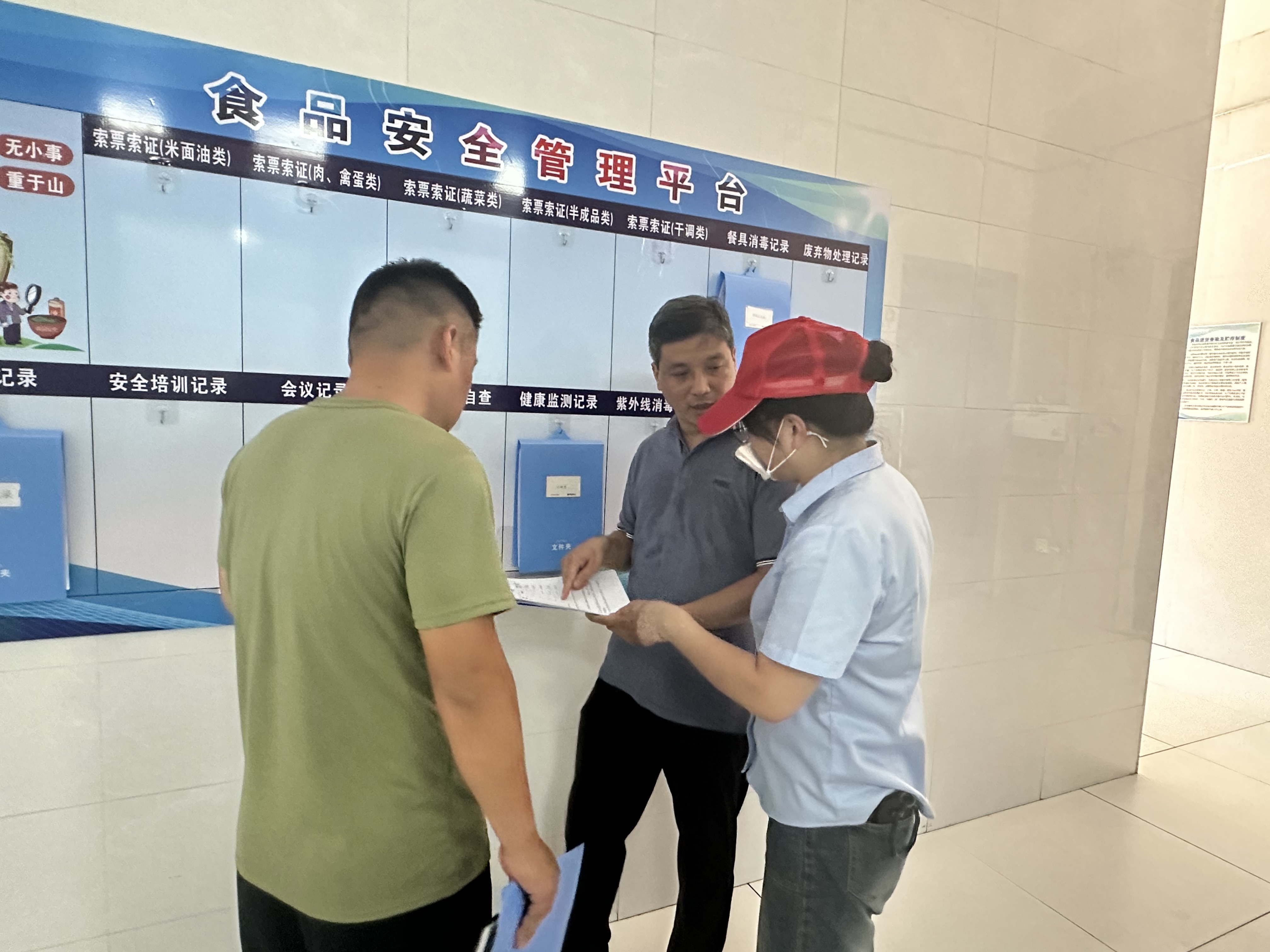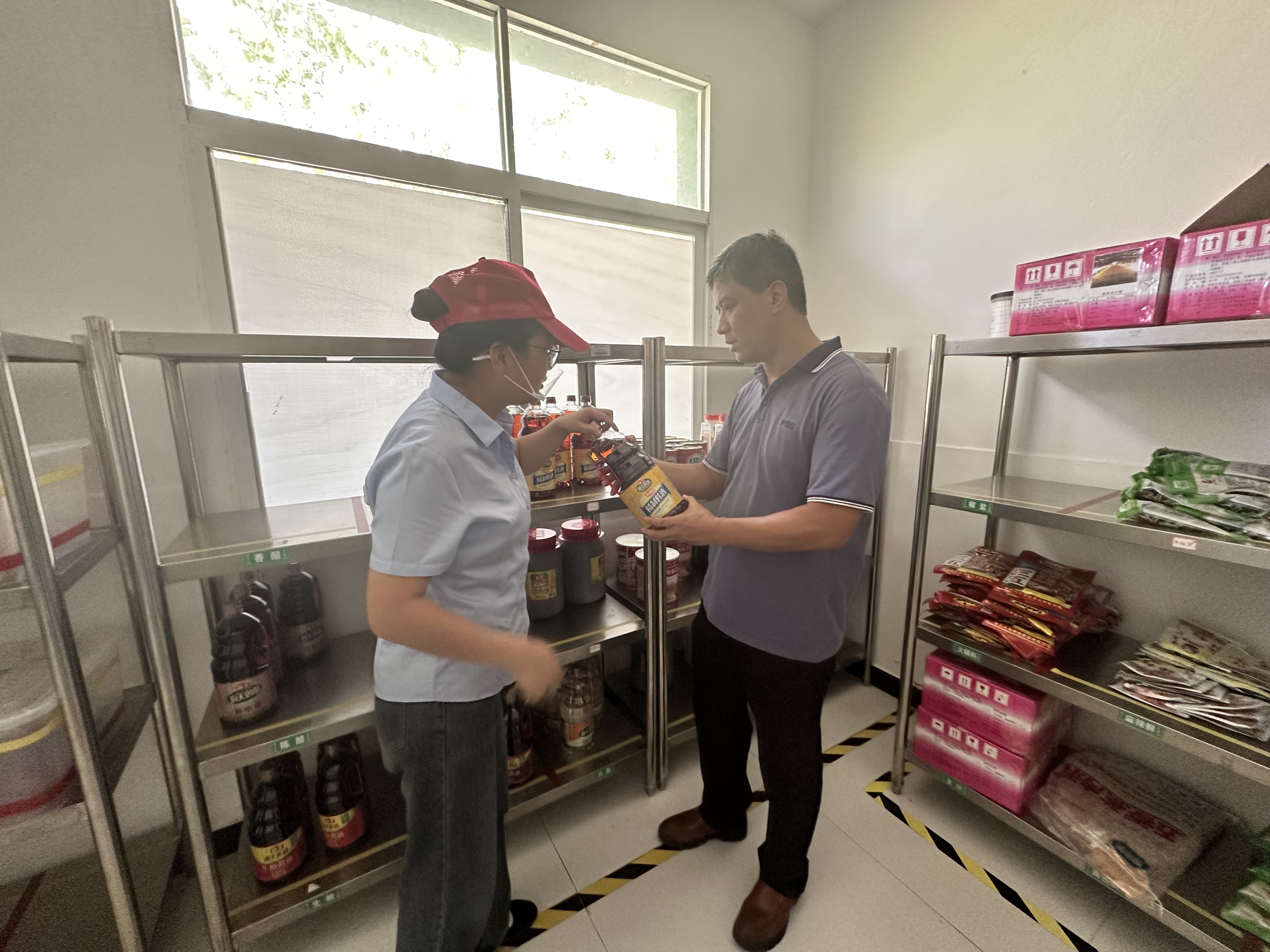 与会人员首先深入食堂一线,重点从五个方面查看食堂的日常工作:一查食品贮存、初加工、切配、烹饪、餐用具清洗消毒等场所布局是否合理;二查“三防”设备设施是否定期开展清洁维护,做到有效防止有害生物入侵和孳生;三查是否开展食源性疾病预防和营养健康宣传教育,倡导学生餐食减油、减盐、减糖;四查是否配备与供餐人数相匹配的餐具用具清洗消毒设施设备;五查清洗消毒岗位工作职责是否完善健全,确保餐具用具洁净。随后,就开学一周来“日管控”中发现的问题做了回头看。