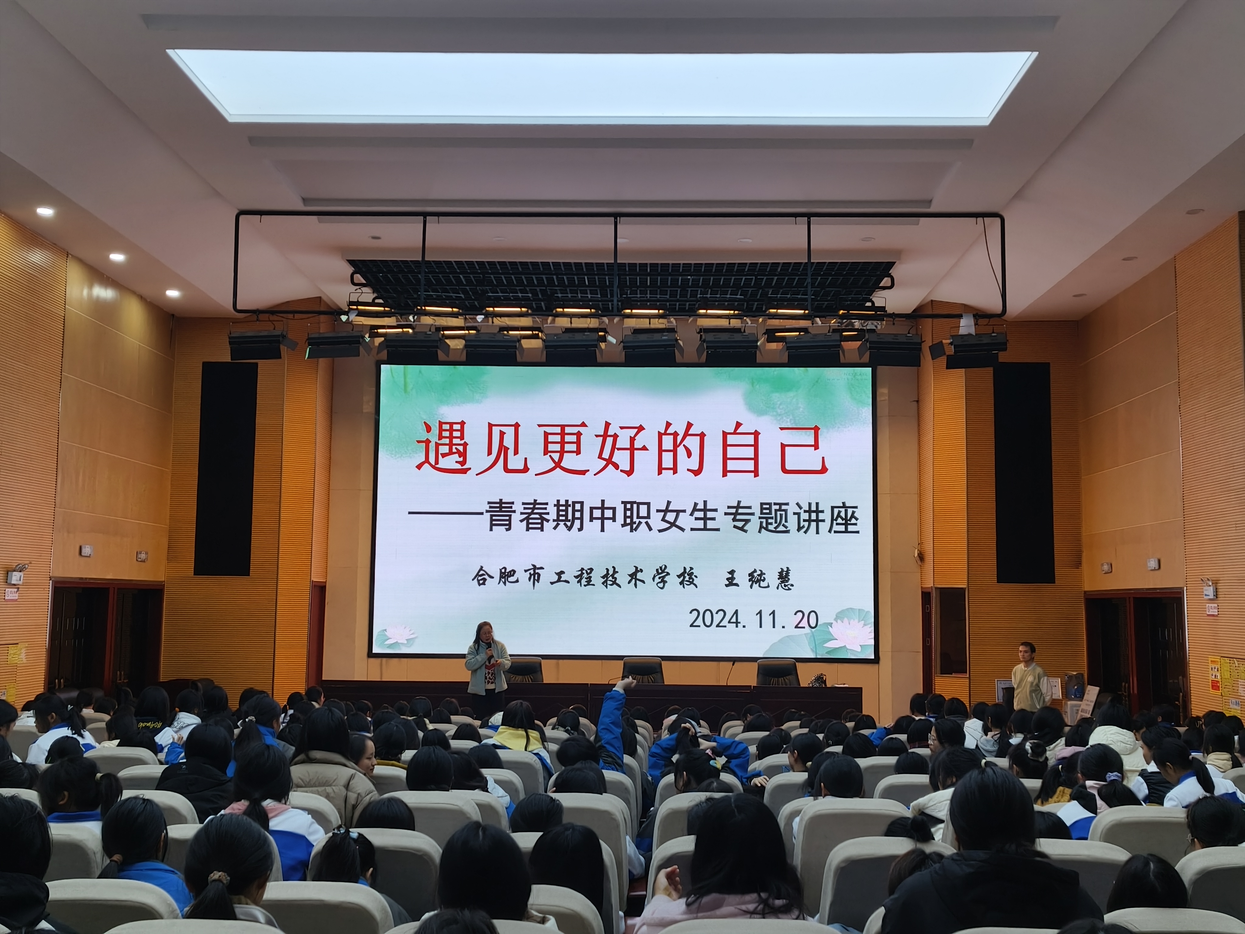 为促进冰球突破正规网站女生青春期的身心健康发展,让正处于青春期的女生能正确认识成长过程中的生理变化和心理困惑,进一步增强自我保护意识,引导女生树立自尊自爱、自信自强的观念。11月20日,冰球突破正规网站举办了以“遇见更好的自己”为主题的青春期女生专题讲座。讲座由王纯慧老师主讲。