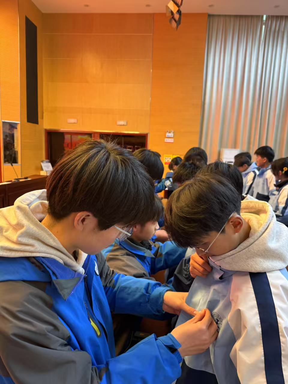 随后,老团员代表为新团员佩戴团徽、发放团员证。团徽在胸前熠熠生辉,不仅象征着共青团的荣耀与使命,更激励着每一位新团员在新征程的道路奋勇前行。团委副书记周智源带领全体新团员庄严宣誓。铿锵有力的誓言,诠释着新团员光荣的时代担当;握紧的右拳,表明了团员们坚定的信念和决心。