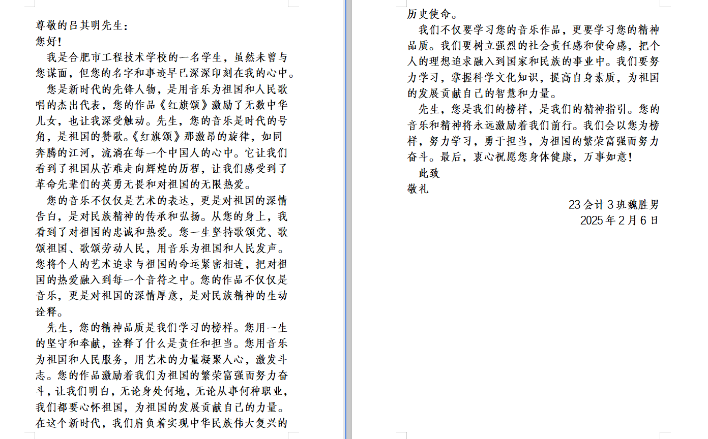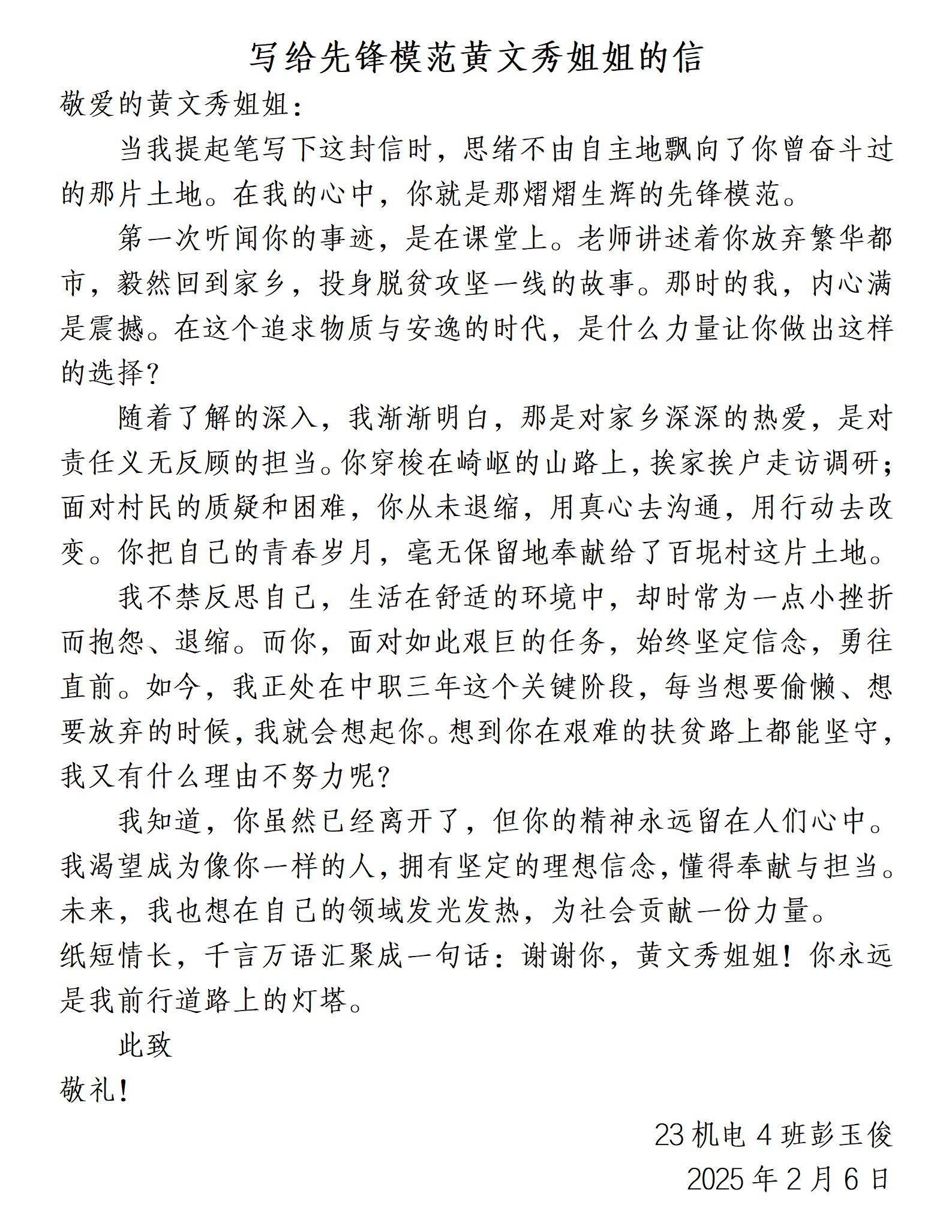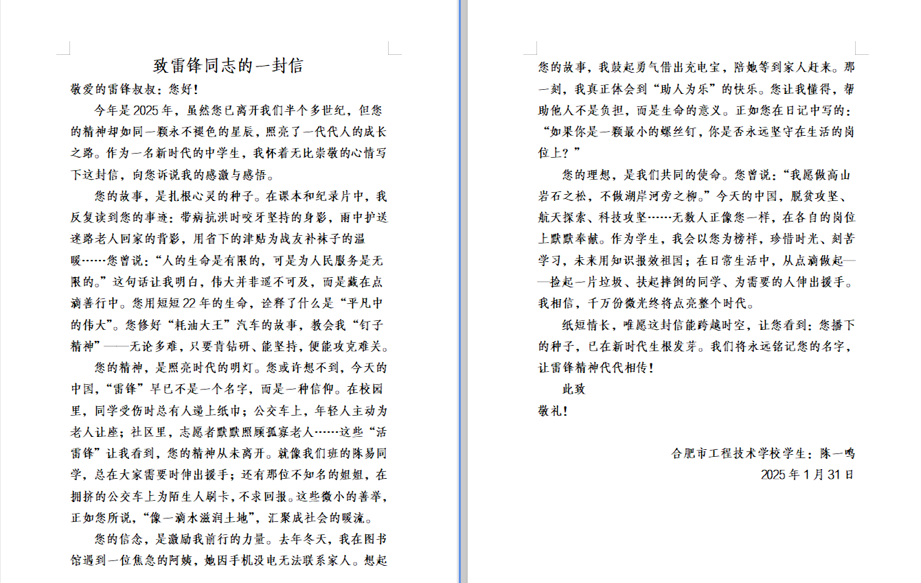 同学们选择一位自己心目中的新时代先锋人物作为写信对象,如“七一勋章”获得者、全国道德模范、航天英雄、科技工作者等,通过网络、书籍、电视等渠道深入了解其事迹和精神内涵。通过写信,激发同学们学习新时代先锋人物的精神品质,树立强烈的社会责任感和使命感。