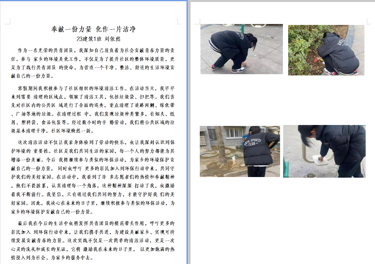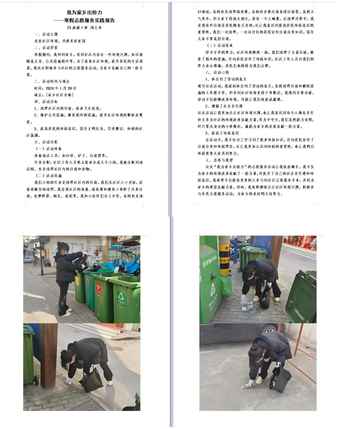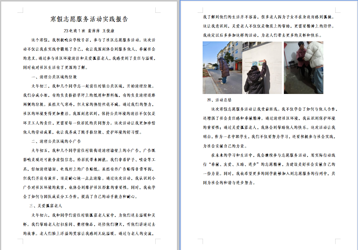 同学们以个人或小组形式,在寒假期间开展志愿服务活动。比如参与社区(村庄)环境清洁工作,清理公共区域的垃圾、小广告,关爱孤寡老人等等。
