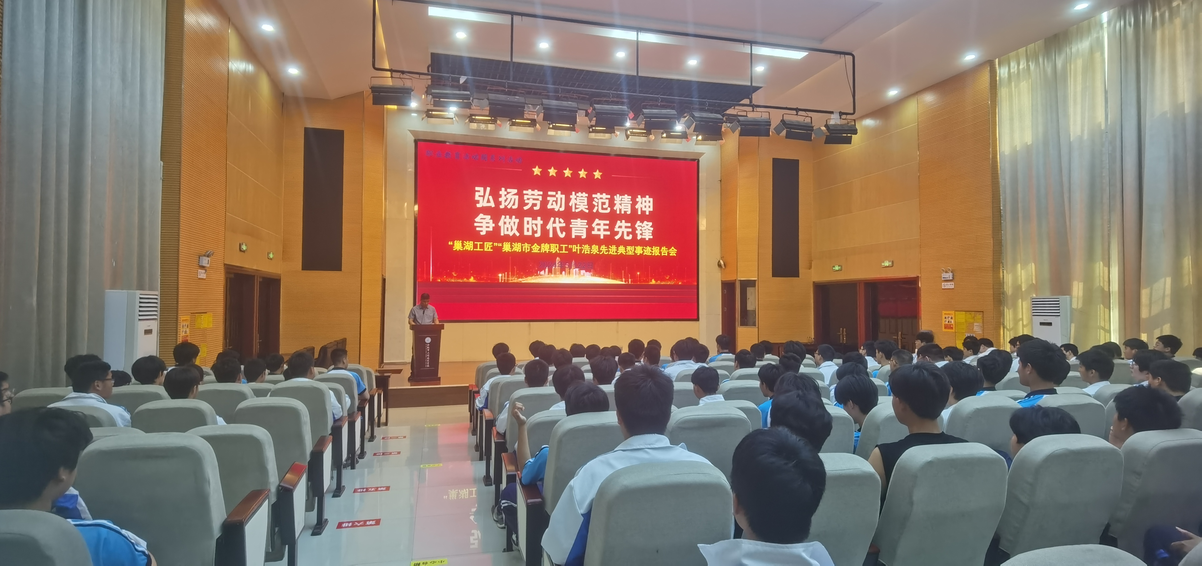 为深入学习宣传贯彻习近平新时代中国特色社会主义思想和党的二十大精神,践行社会主义核心价值观,进一步弘扬劳模精神、劳动精神、工匠精神,厚植劳动情怀,营造劳动最光荣的校园文化氛围,培养德智体美劳全面发展的社会主义建设者和接班人,5月22日上午,MG冰球突破官网在报告厅隆重举行“劳模工匠进校园”宣讲活动。巢湖宜安云海办公室主任朱善祥、设备管理部主任叶浩泉、办公室副主任刘桂梅和2023级机械、汽修专业全体学生参加本次宣讲活动,活动由校长潘明主持。