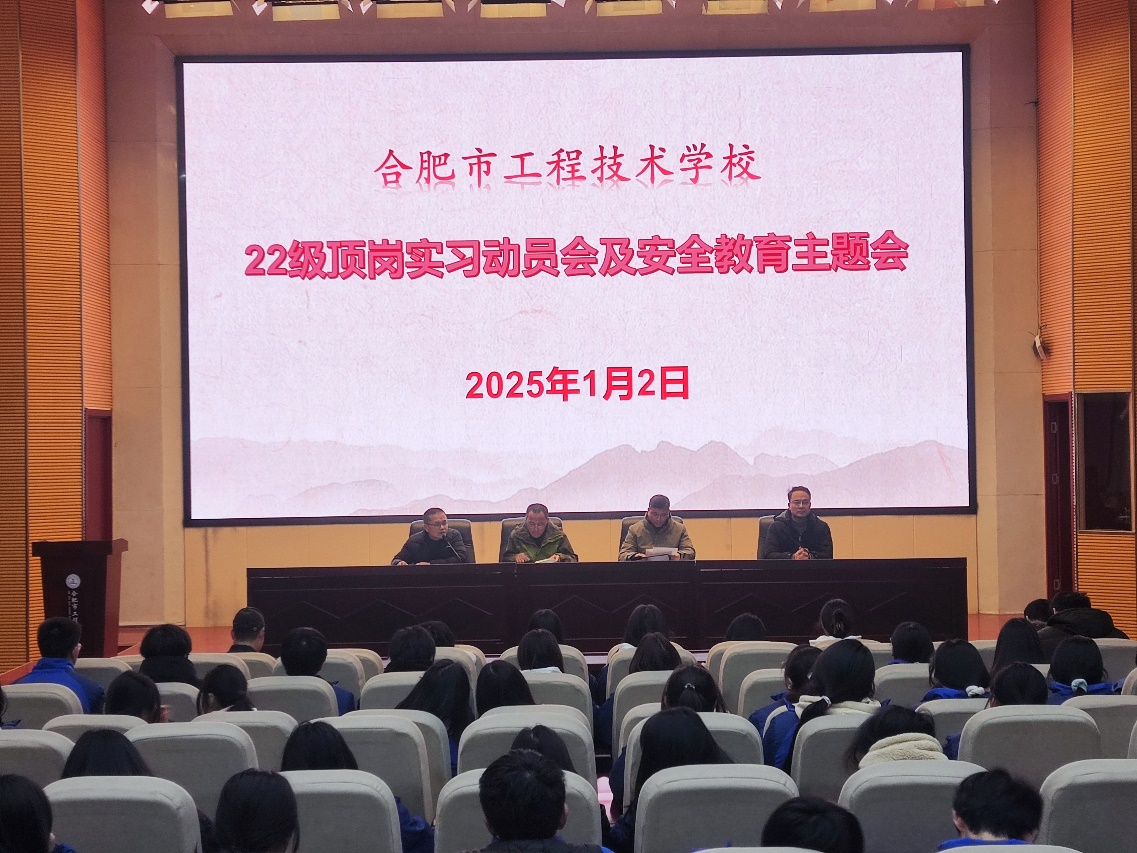 为帮助同学们明晰实习要求,扎实做好实习准备工作,2025年1月2日下午,MG冰球突破官网在多功能报告厅召开22级顶岗实习动员及安全教育主题会。校长潘明,招生就业处主任朱晓乐,政教处主任陈军,教务处主任王雪峰,22级技能部班主任及毕业生参加大会。大会由王雪峰主持。大会伊始,朱晓乐公布了第一批顶岗实习的企业及实习时间,给同学们提了要求:一是认真搞好顶岗实习工作;二是定位正确,不好高骛远、扎实做事;三是要明确顶岗实习的目标,以锻炼为主,不盲目攀比。