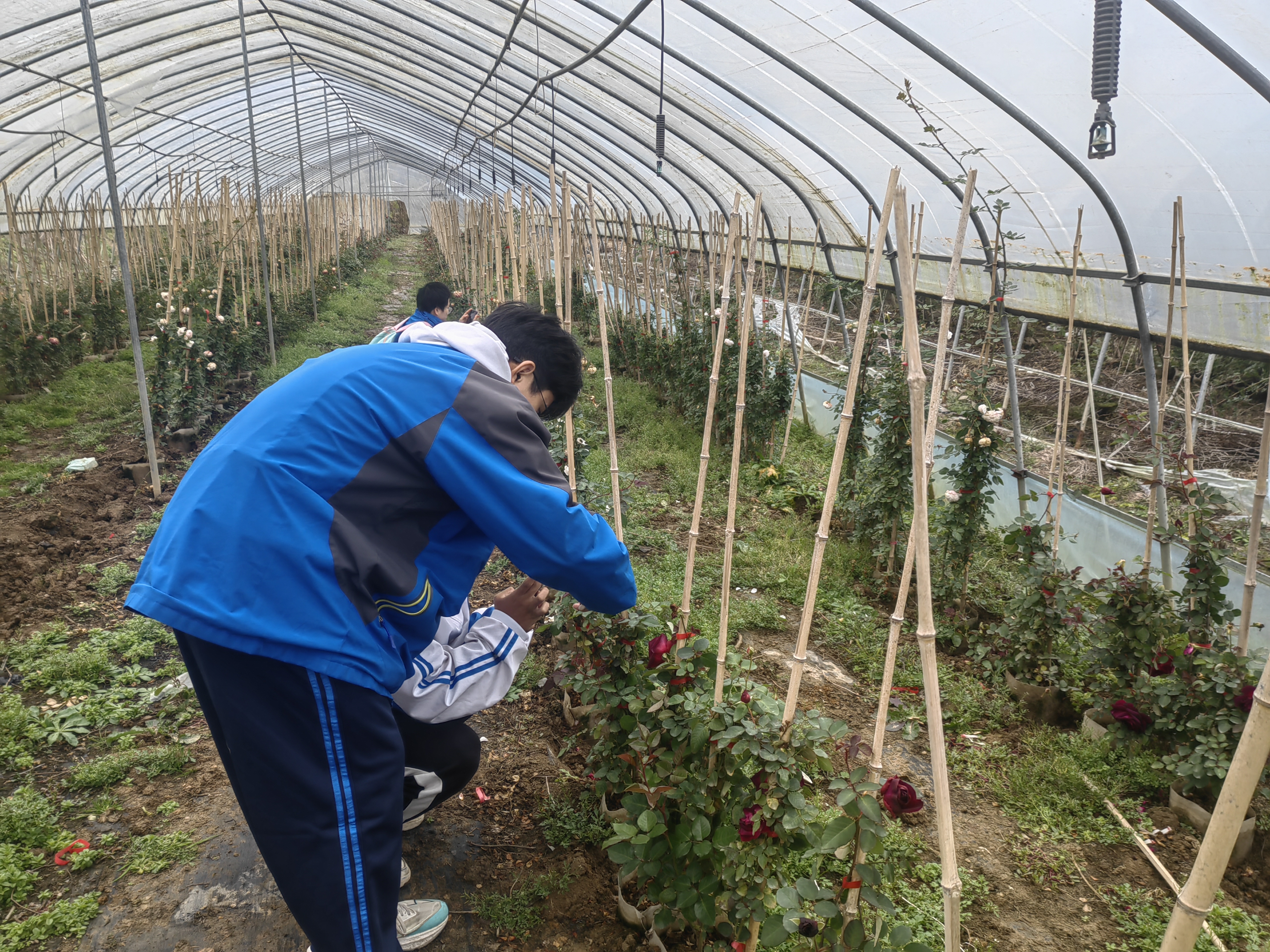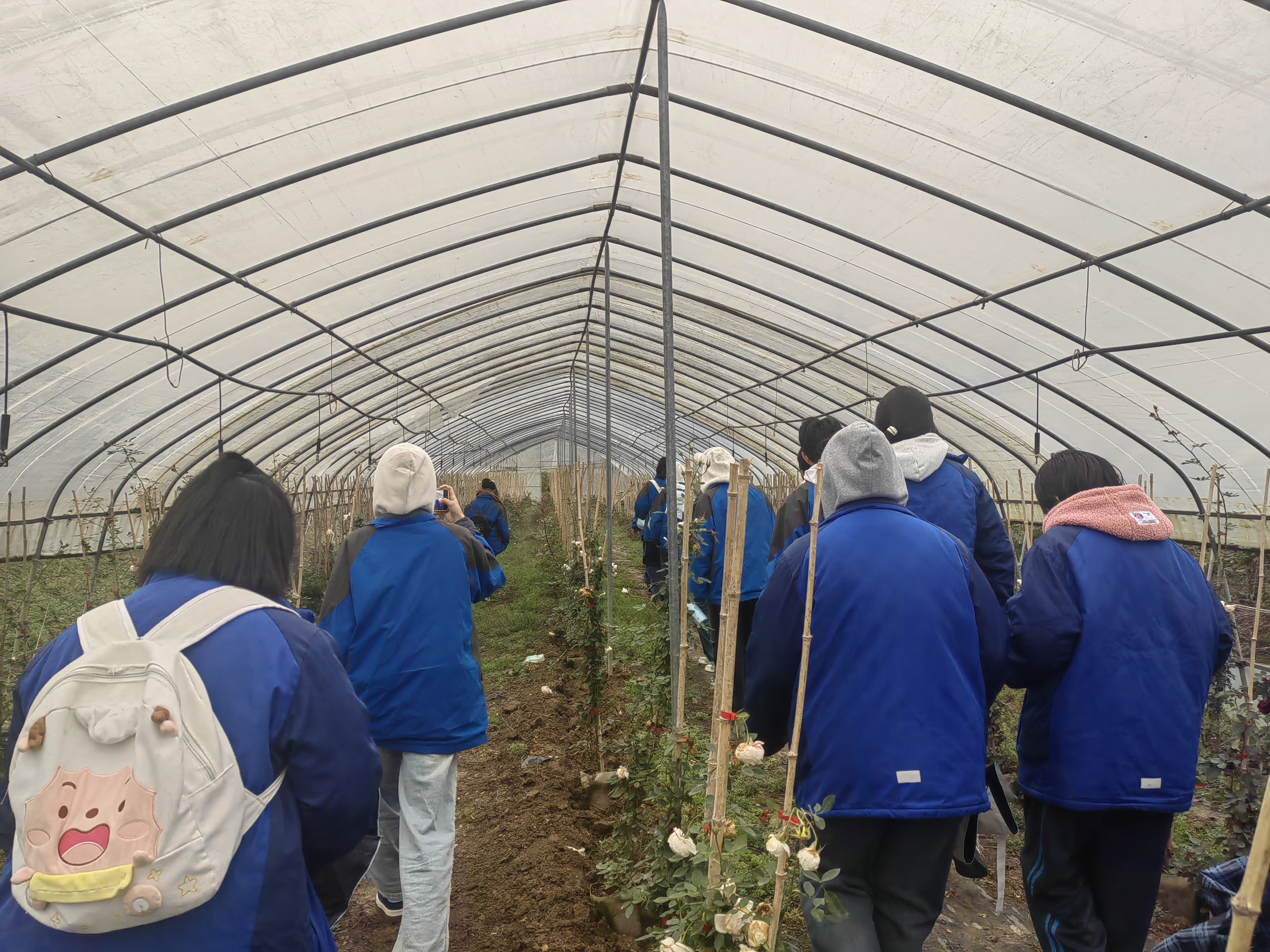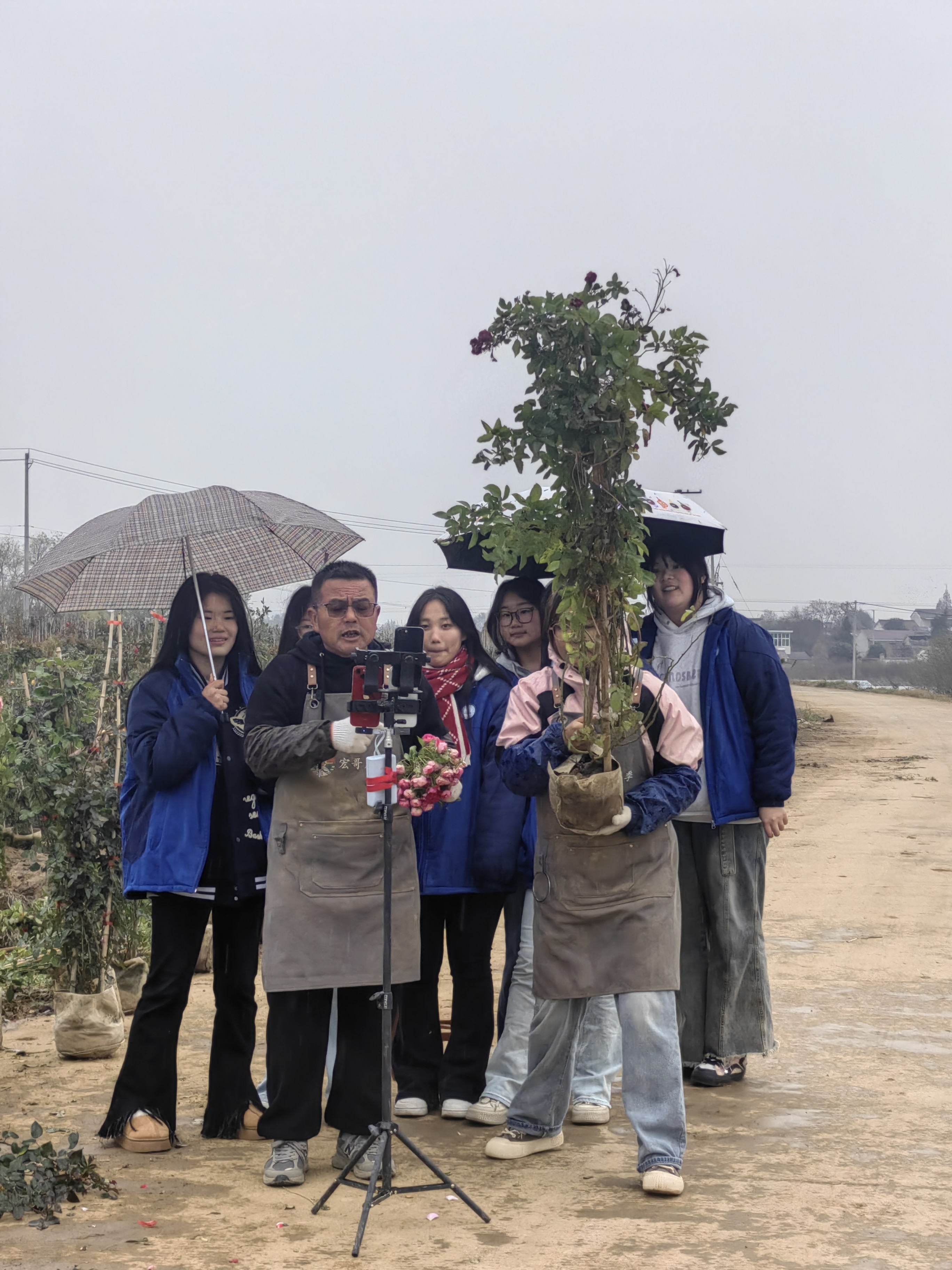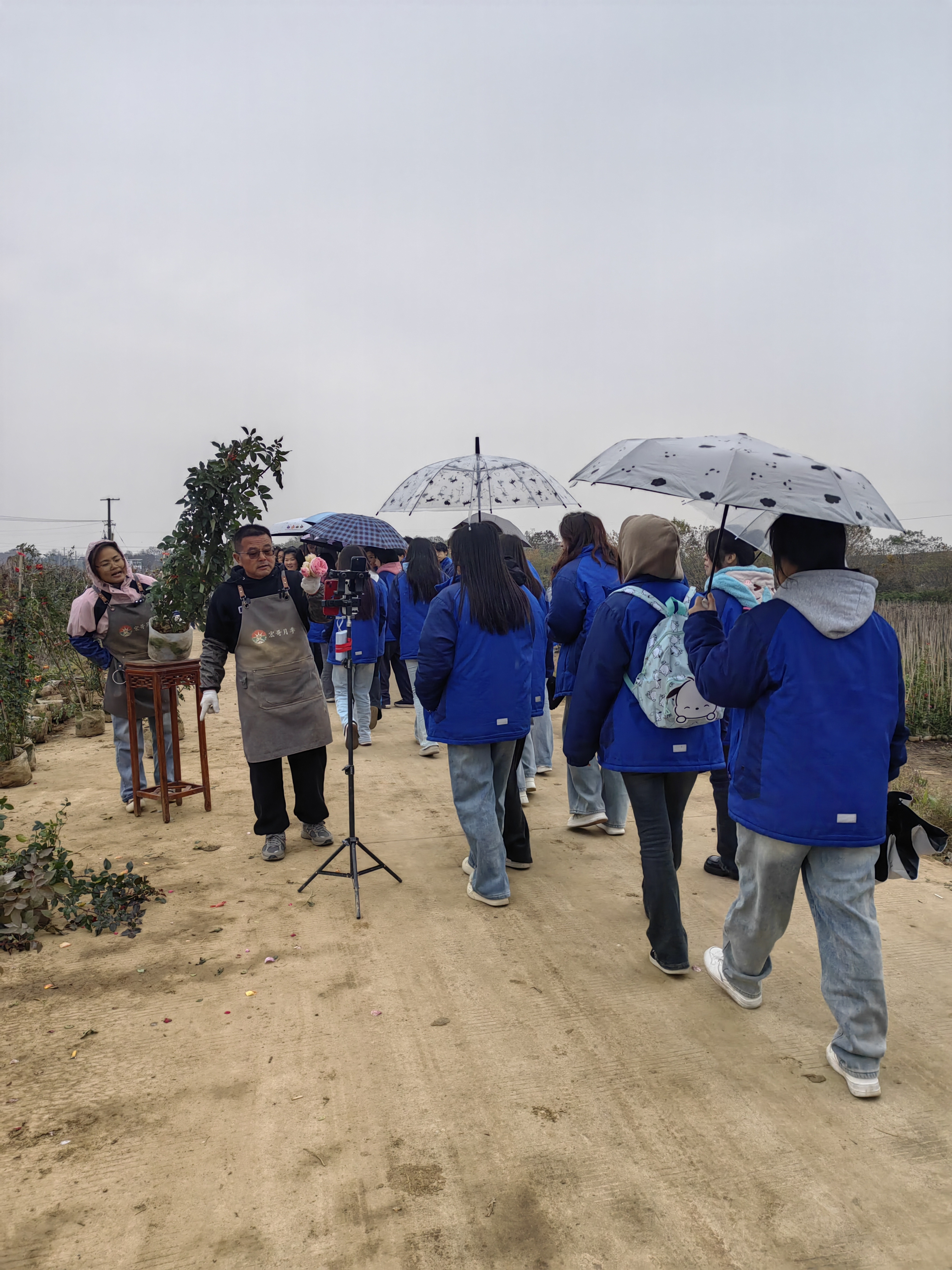 首先,她带着学弟学妹们参观了花卉示范基地,给大家介绍现在基地的情况,途中何孝霞父亲的现场直播引起了电商专业学生浓厚的兴趣,学生们也纷纷参与其中。毛毛细雨丝毫没有减弱同学们激动的心情,她们一边穿梭在开满鲜花的苗圃中,一边聆听着何孝霞对月季种植从选枝到土壤改良、水肥管理与病虫害防治技术上的介绍,大家一方面感受到了创业成果带来的喜悦,一方面也深深体会到创业的不易。